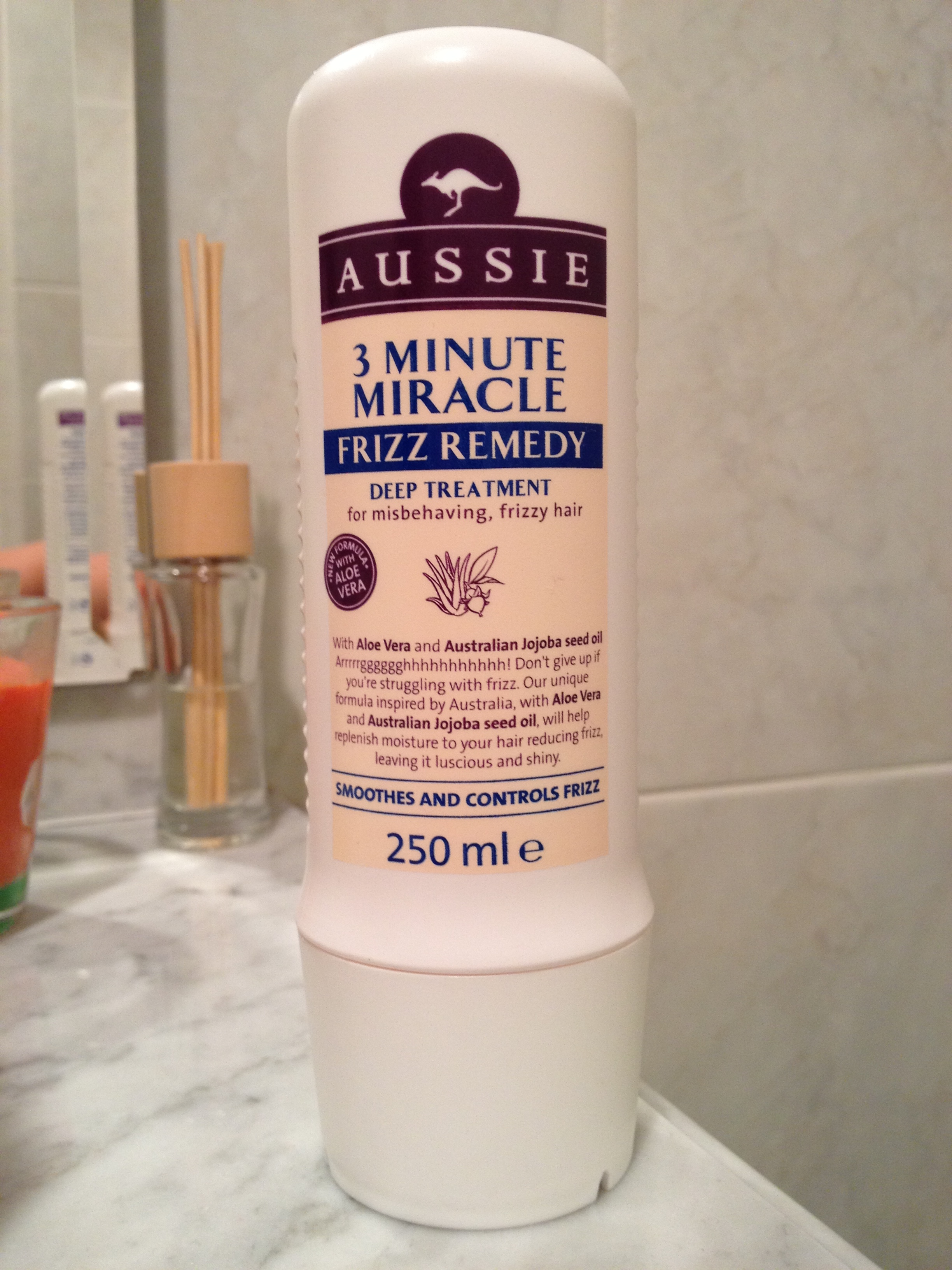Pour ma part j’ai décidé de tester une sorte d’après shampooing pour cheveux frisés et épais qui promet de dompter les frisottis, le 3 minute miracle Frizz remedy.  J’ai beaucoup de petits cheveux très épais qui vont dans tous les sens et il est vrai que j’ai du mal à trouver un produit qui réussisse à dompter ces repousses, alors pourquoi pas tester un produit de plus ?