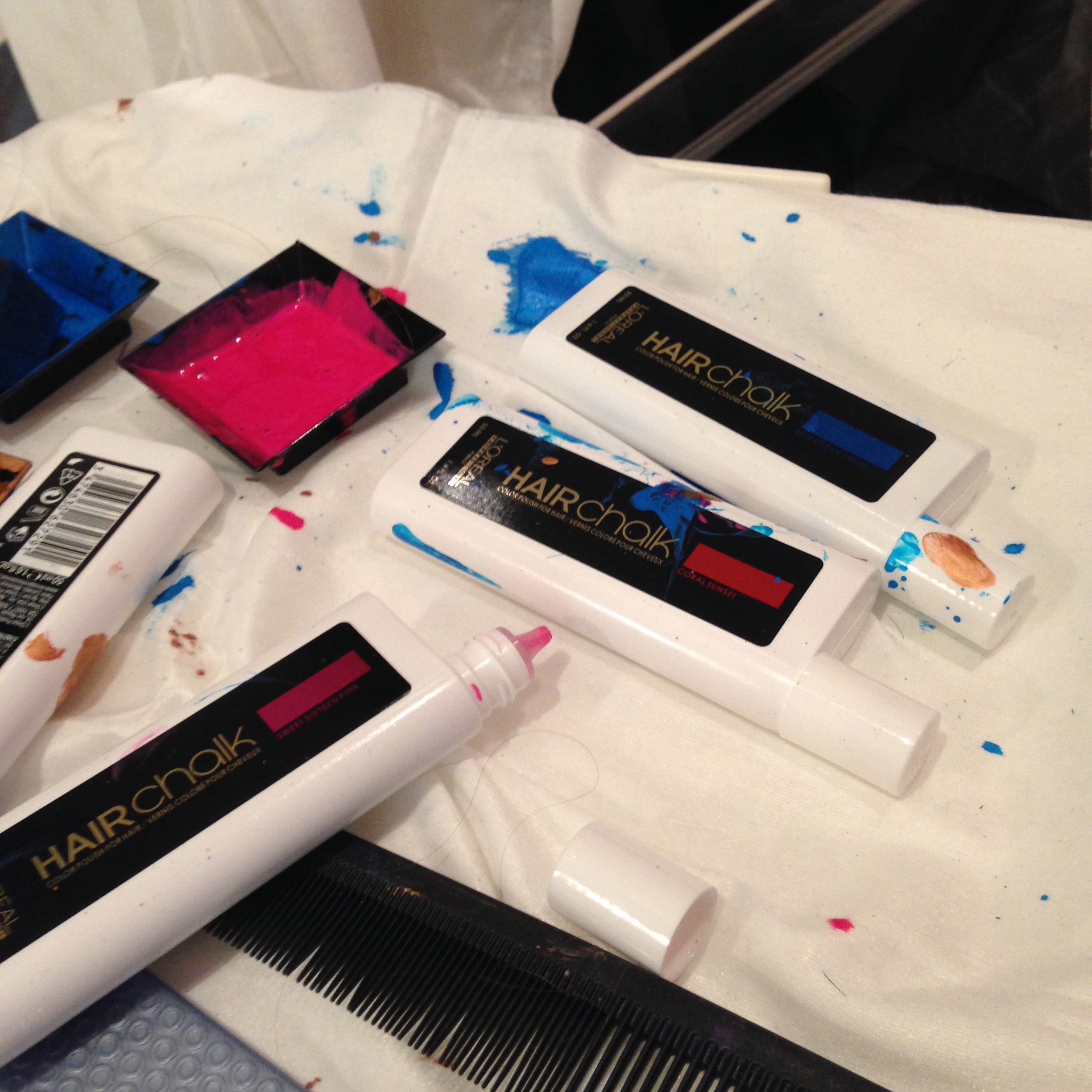 1. J’étais à la même soirée, mais bien plus tot. J’ai pu tester le hairchalk avec des mèches … bleues !! rendu très sympa (tu peux voir sur mon blog).