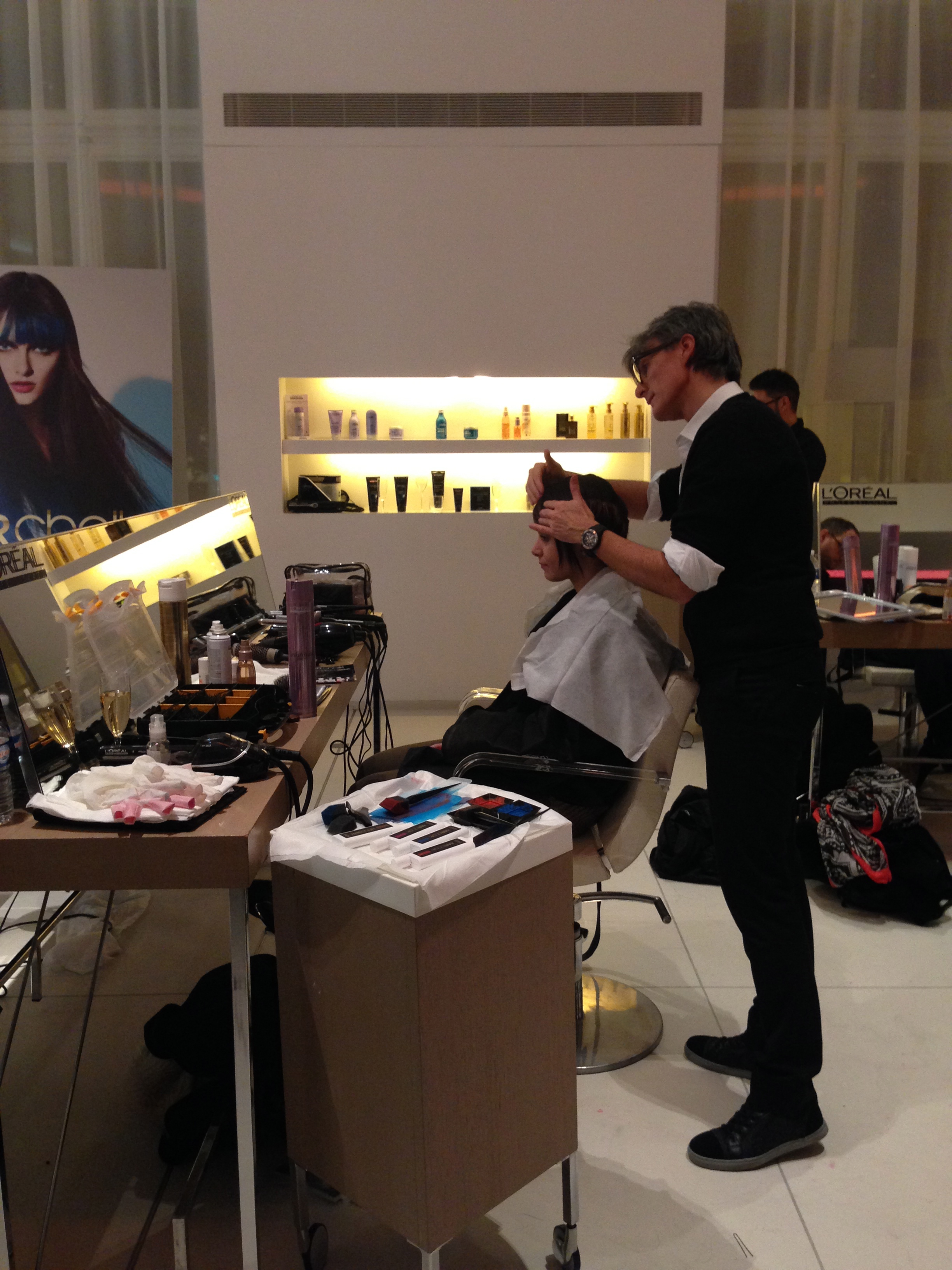 Une coiffeuse est alors venue l’aider et ils se sont mis à deux sur ma tête AHAH, décidément je suis vraiment la hantise des coiffeurs, des cheveux épais et un peu crépus, pas faciles à travailler.