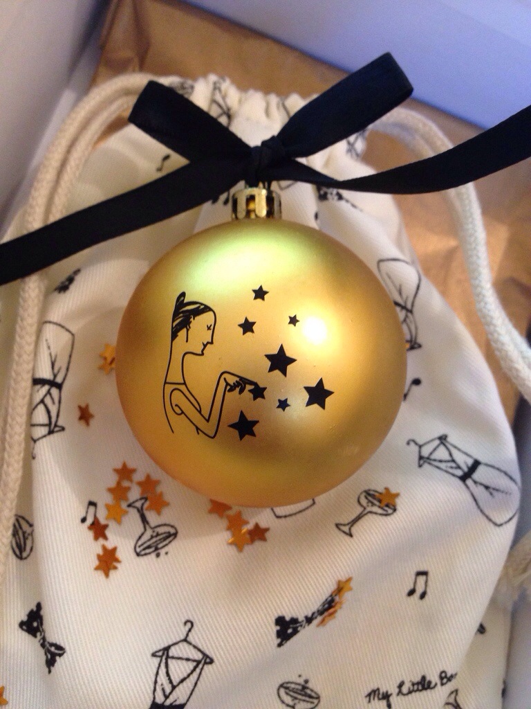 Premier goodie: une boule de Noël avec le logo Mylittle et un petit nœud. Bon ça ne sert pas à grand chose mais le nœud me fait craquer.