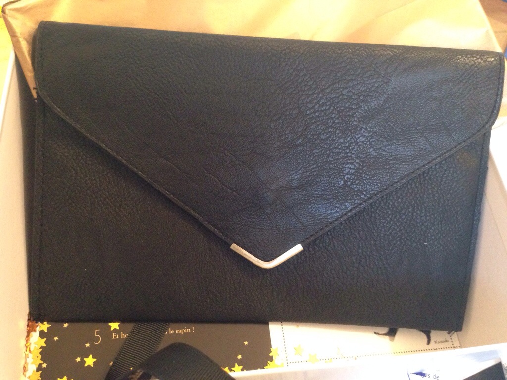 Ensuite, on trouve une pochette emballée avec un joli mot d’écrit à l’intérieur. La pochette est un peu petite pour moi qui suit adepte des fourre-tout mais je la trouve très mignone et je vais certainement m’en servir pour le nouvel an et plus tard pour y ranger des papiers qui trainent généralement dans mon sac à mains.