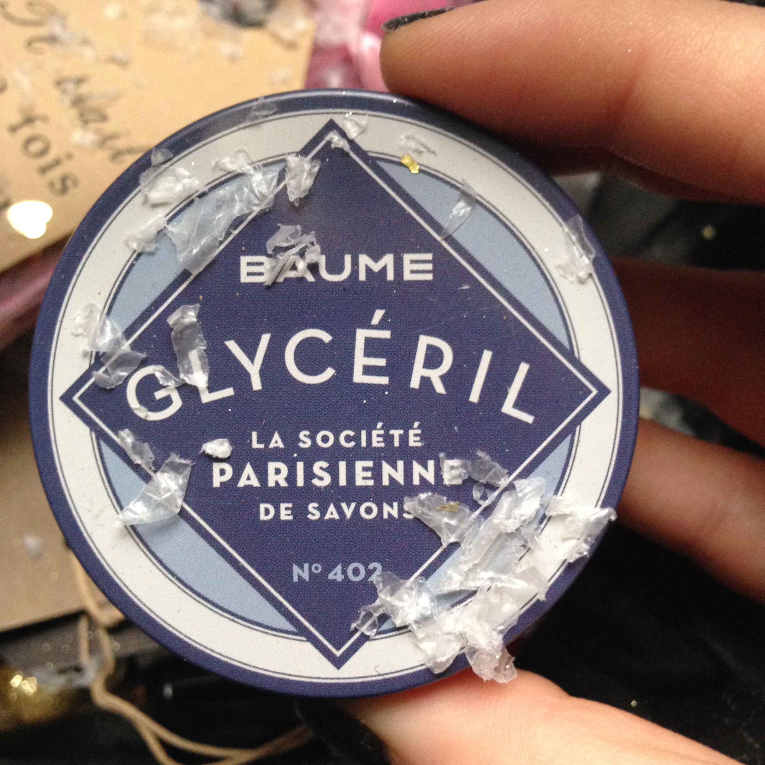 Ensuite encore un produit de la marque Société Parisienne des Savons sauf que ce n’est pas un savon mais un baume à lèvres appelé Glycéril de 33g enfermé dans une boite métallique ronde. J’aime beaucoup le packaging un peu retro et niveau contenu je vais en avoir pour une éternité donc je pense m’en servir pour tous les bobos, que ce soit aux lèvres aux mains ou aux coudes.