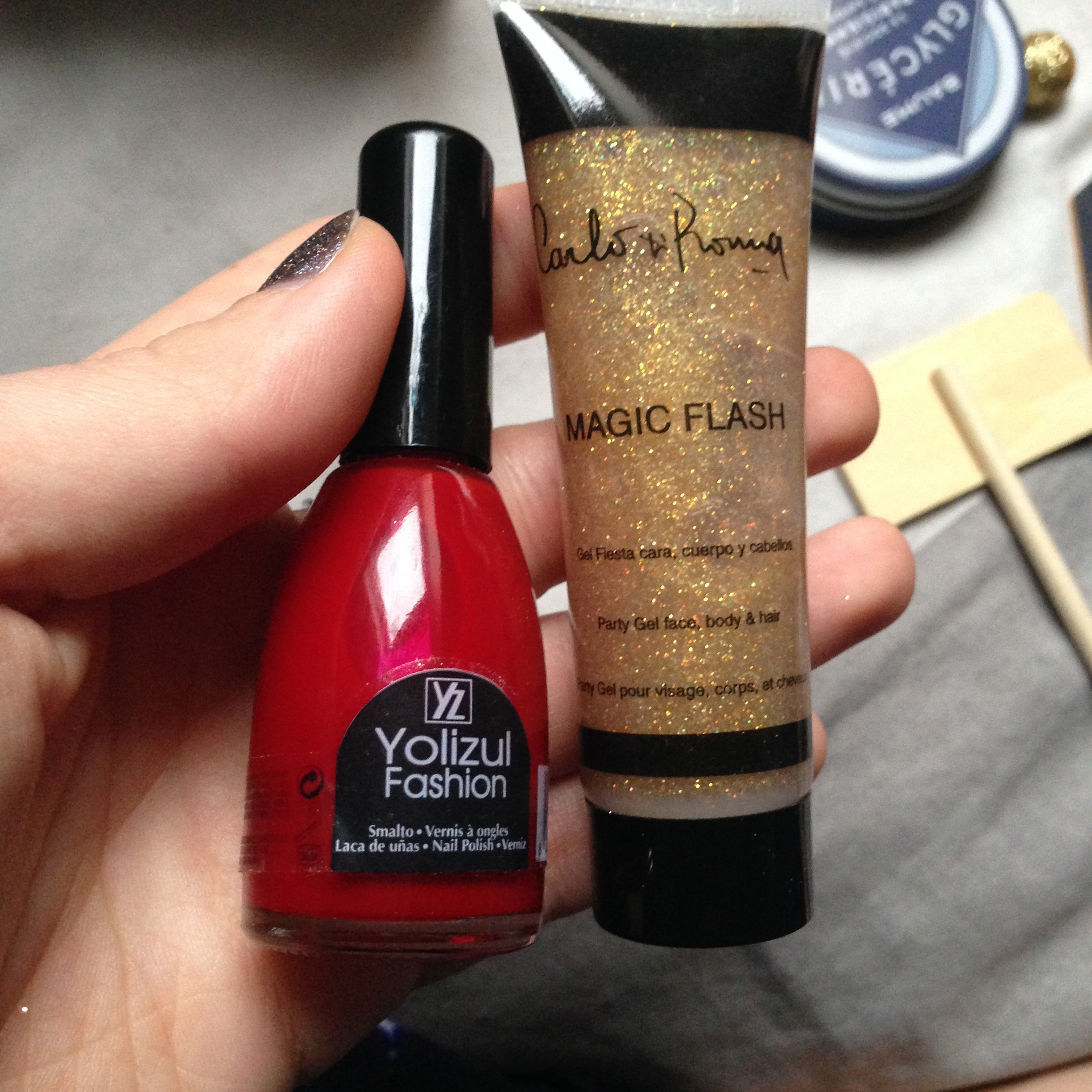 Je continue dans la série des points négatifs avec deux produits: un vernis rouge de la marque Yolizul Fashion et un gel pailleté de la marque Carlo di Roma. Bon, là je ne vais pas être tendre mais clairement ce sont des produits…du marché ou de magasins de type bazar. Cette fois ci le prix précisé sur l’affichette correspond au prix réel: 2€ environ.  J’ai pas envie non plus d’être trop sévère avec la box car il est vrai qu’il est difficile de faire une box complète à des prix défiant toute concurrence et là je dois avouer que pour une trentaine d’euros ça reste correct.
