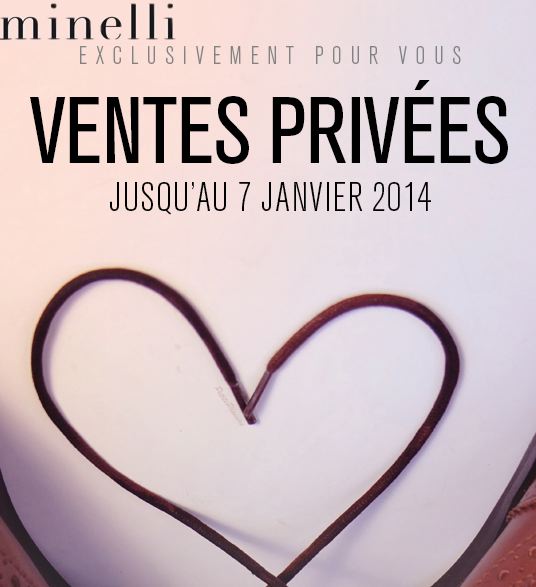 • Un peu de chaussures maintenant avec Minelli. Comme d’habitude pendant les soldes et les ventes privées Minelli le système de réduction fonctionne par code couleur. Vous retrouvez l’offre sur internet avec le code VPHI14 (il faut avoir un compte Minelli mais si vous en avez pas déjà un il vous suffit de vous inscrire) mais également en magasin en imprimant l’invitation que vous trouverez ici. Offre valable jusqu’au 7 Janvier.