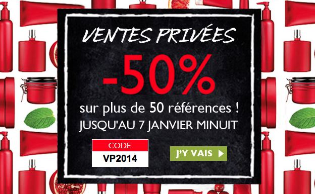 Pour finir en beauté, The Body Shop fait une vente privée avec 50% de réduction sur 50 références. Le code a indiquer est VP2014 sur le site de la marque.