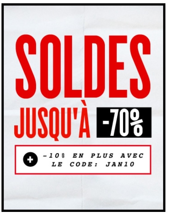 Pour Etam c’est aussi 10% de réduction supplémentaire sur la boutique en ligne pour tout achat d’articles soldés avec le code CHIC10 !
