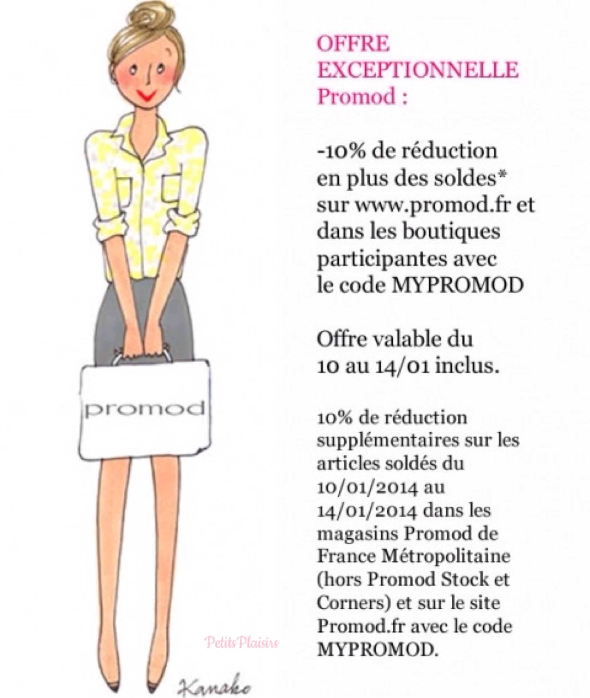La marque bobo chic Promod nous offre, grâce à My Little Paris, 10% de réduction supplémentaire en magasin (sur présentation de la petite invitation ci-dessous) ou sur le site internet en entrant le code MYPROMOD . Cette offre est valable jusqu’au 14 Janvier ! Beaucoup de jolies pièces sont à -70% et -50%, personnellement j’en ai profité pour m’acheter une petite robe blanche parfaite pour l’été à -70% ! (FINI)