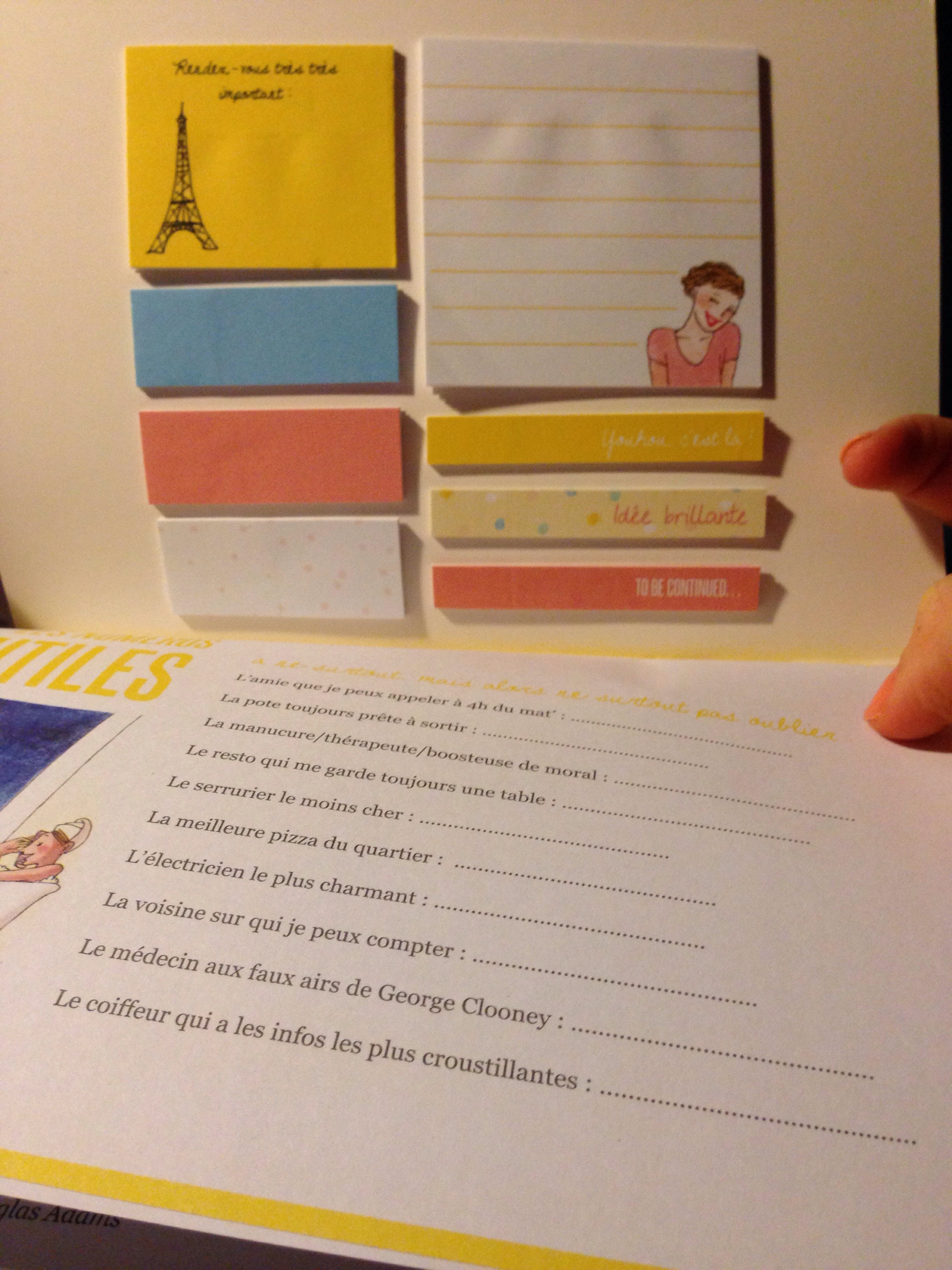 Bien entendu j’ai retrouvé l’agenda, pas dans le même format, cette fois ci il est plus grand, pas de la même qualité non plus. La couverture est souple, je préférais largement la couverture rigide de l’année dernière. Au niveau des pages c’est pareil, l’année dernière on avait un vrai agenda avec des jours et des mois, cette année on a des pages dans lesquelles on peut y inscrire nos semaines (au boulot !). C’est pas mal quand on écrit pas grand chose et pas très souvent (comme ça l’agenda peut servir au delà de 2014). Gros point positif: la mignonnerie des posts it à l’intérieur de l’agenda, ils sont trop craquants !!