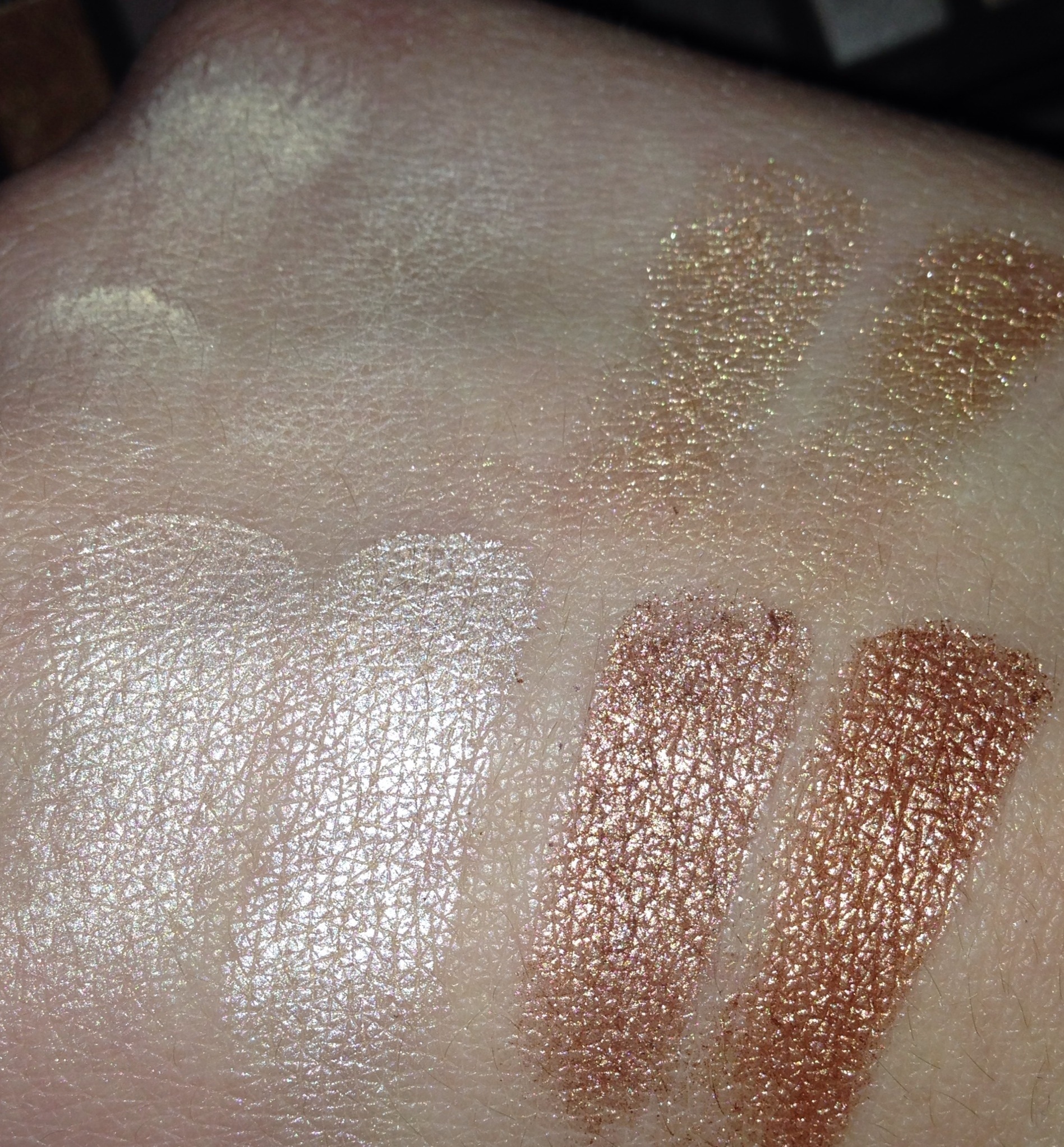 A gauche les swatch Naked 2, à droite les swatch Dreamy.
