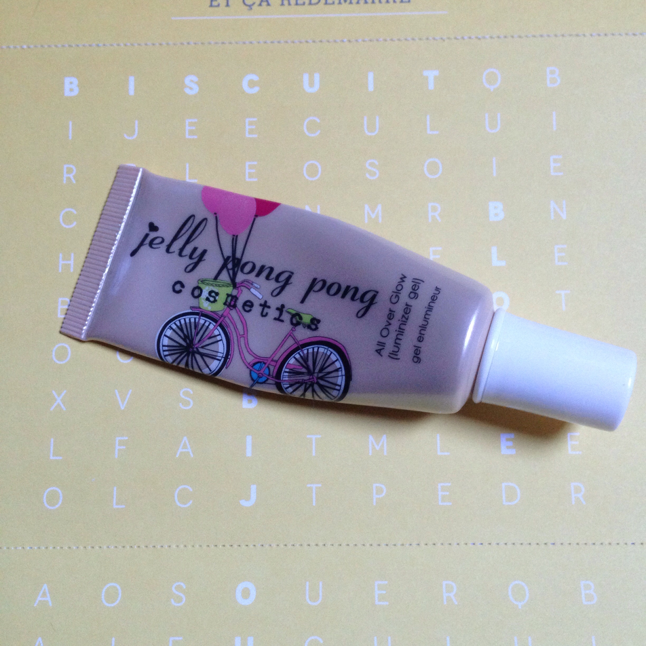 Deuxième produit: l’enlumineur Jelly pong pong: à l’ouverture j’ai l’impression que le flacon est vide, je dois beaucoup appuyer pour voir sortir le produit, mais après avoir chassé tout l’air et avoir swatché l’enlumineur sur ma main je peux vous dire qu’une toute petite quantité de produit est suffisante pour créer des points de lumière ! La couleur est légèrement rosée, il me rappelle l’enlumineur So susan (et en regardant bien sur le produit je vois qu’il est noté http://www.sosusan.com j’en déduits donc qu’il s’agit du même produit). Je l’ai alors en double mais ce n’est pas grave car c’est l’outil idéal pour rayonner ! Personnellement je m’en sert sur le huât des pommettes, le décolleté ou les épaules (mélangé à un peu de crème hydratante pour ces deux zones). Essayez, vous aller adorer !