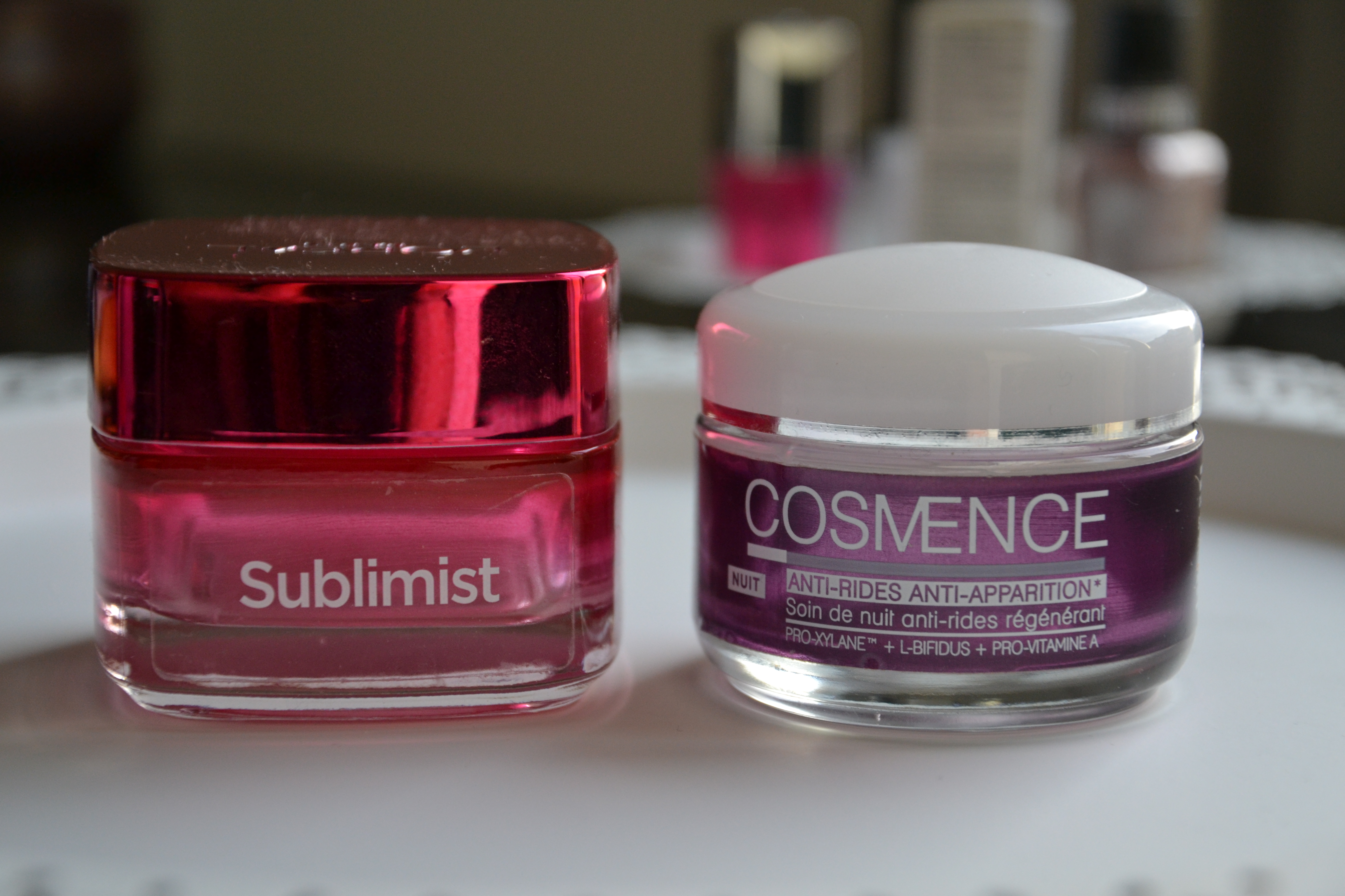 Le jour: j’ai choisi le Soin de jour hydratant correcteur Peau parfaite Sublimist de l’Oréal fin septembre pour ma crème de jour. J’aime beaucoup les crèmes en pot car je peux voir facilement où j’en suis et je trouve cela plus joli même si c’est plus lourd à transporter. Le soin est hydratant mais je n’ai pas remarqué de réel changement sur le point correcteur. Mes pores ne sont pas resserrées et mon grain de peau n’est pas changé. Ma peau est en fait juste hydratée, et c’est déjà pas mal.