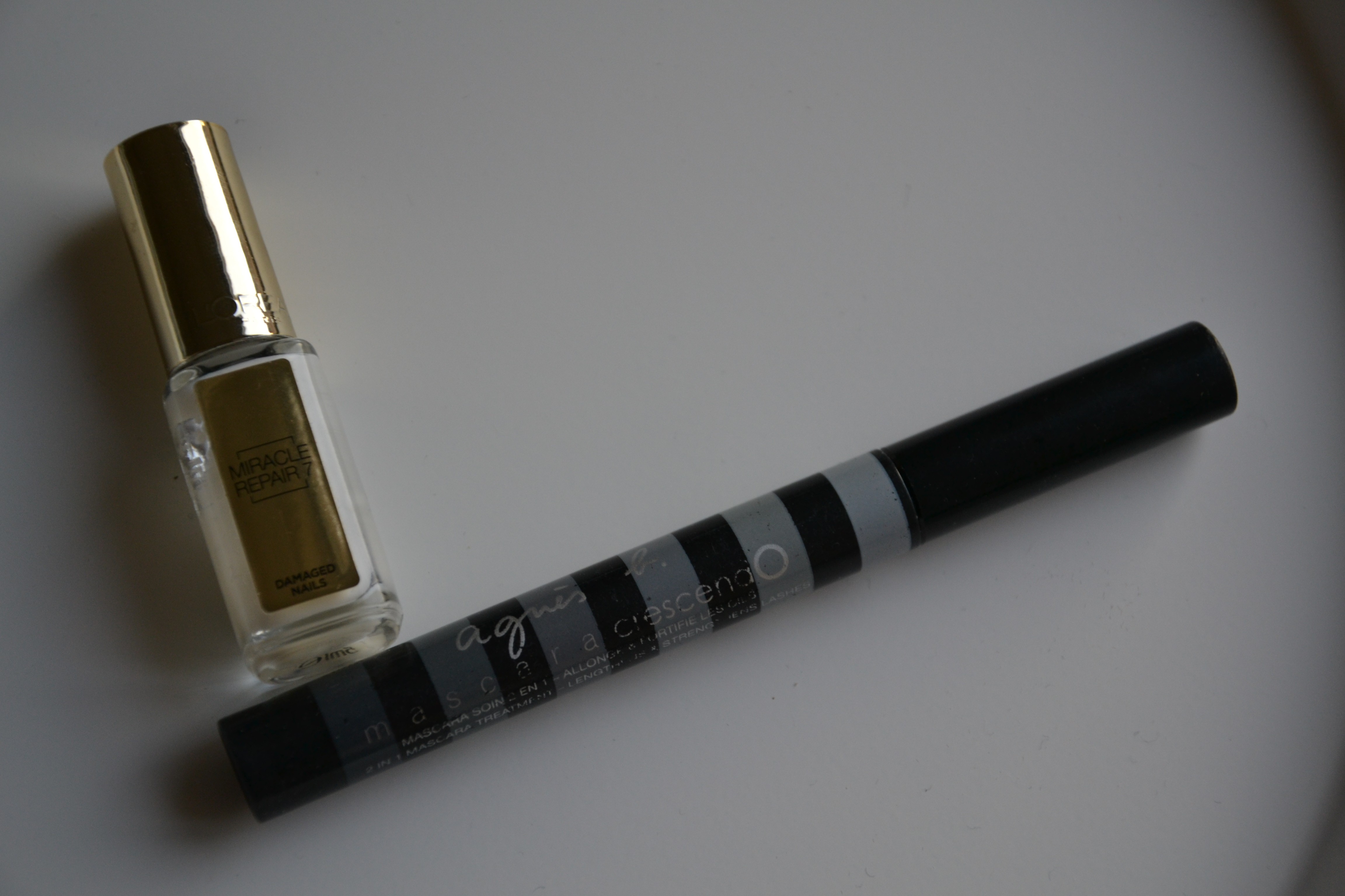 Le prochain produit n’est pas vraiment un produit de maquillage puisqu’il s’agit d’une base pour les ongles. La Base Miracle Repair 7 de l’Oréal promettait tout un tas de choses, des ongles plus forts, plus lisses, plus beaux, moins cassants et se dédoublant moins. De tout ça je ne sais même pas si une seule promesse a été respectée. C’est un produit que je n’ai pas aimé pour deux raisons: 1- les ongles ne sont pas plus forts et 2- le vernis devient pâteux très vite, pour preuve mon flacon pas fini mais avec un vernis à l’aspect pas joli-joli.