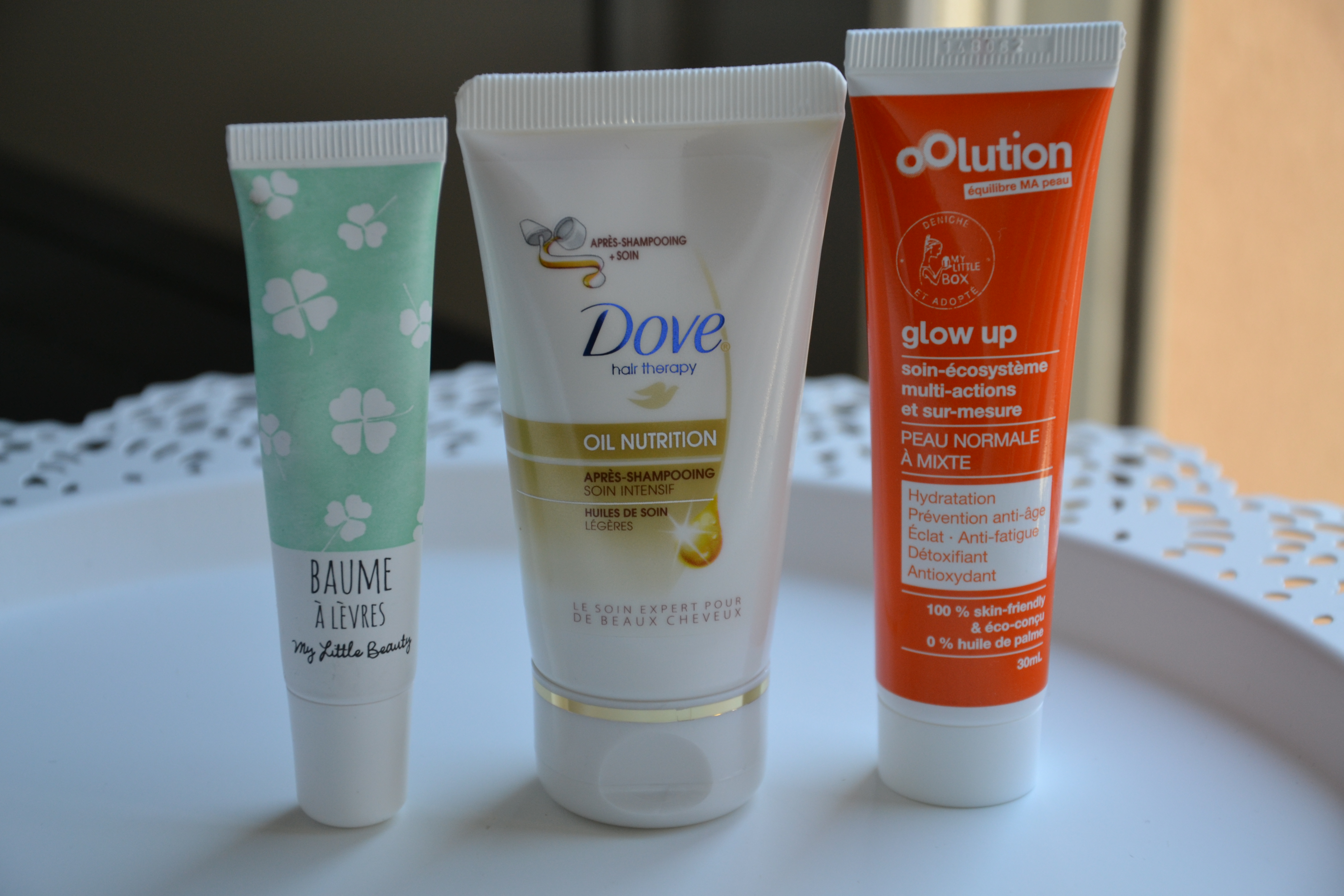 Et pour le dernier produit, celui qui diffère d’une abonnée à une autre, devinez ce que j’ai reçu ? Un soin après shampooing Dove en 50 mL. Comme la Smile box, j’ai encore reçu un produit tout naze à côté de ce que d’autres abonnées ont reçu. J’ai vu des versions avec le masque Herborist, la bb Erborian, ou encore l’huile pour les pointe Ultra-doux. Je vous l’ai dit, la chance c’est pas pour moi.