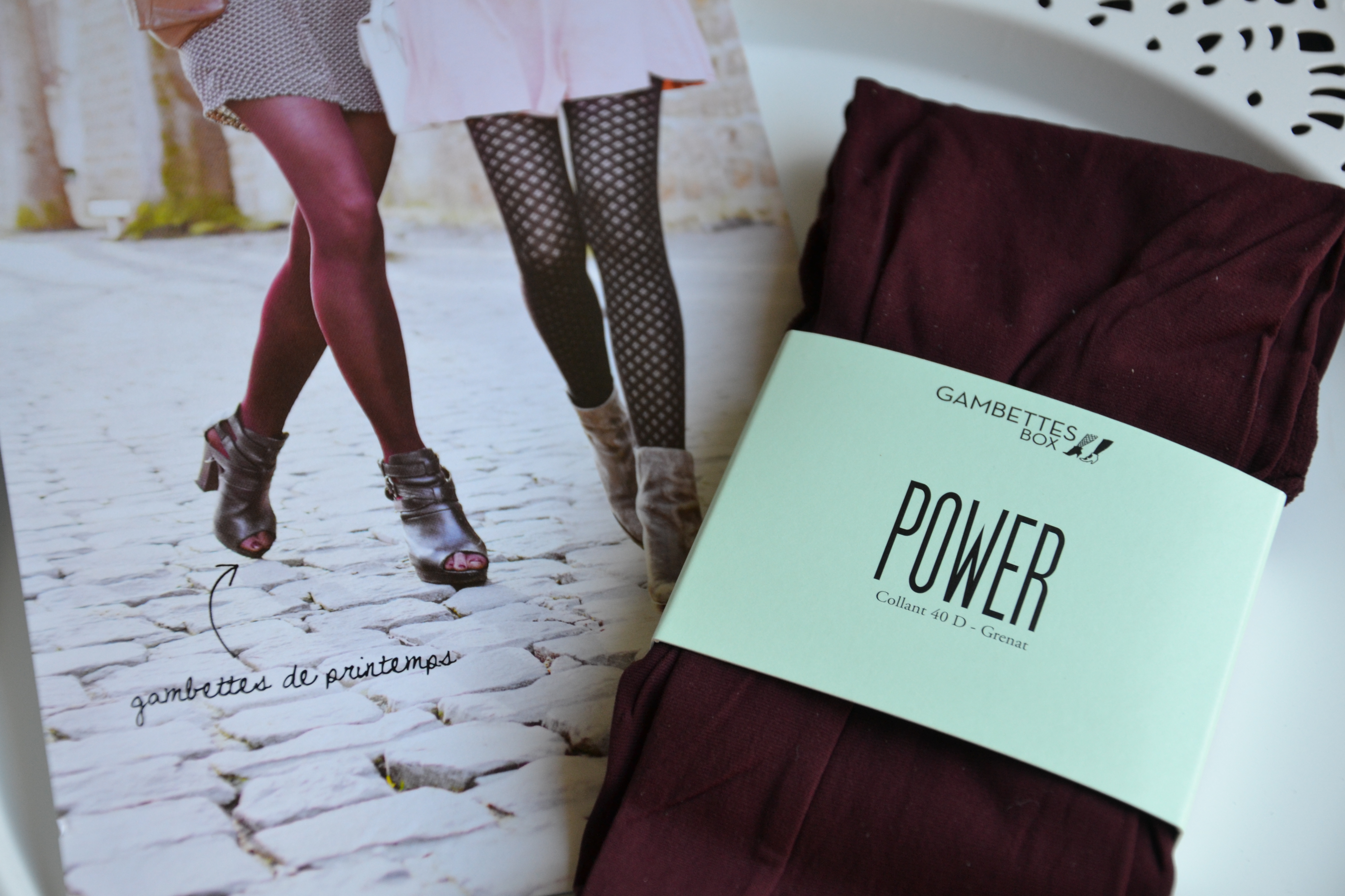 Le second collant est lui un collant appelé Power. C’est un bordeaux sans motifs et là je dois avouer que je ne comprends pas. Pourquoi un collant bordeaux pour célébrer le printemps ? Un collant plus clair aurait été génial mais non. Chez My little et Gambettes box on se dit qu’une couleur automnale pour le printemps ça rend rien. Bande d’avant gardistes !