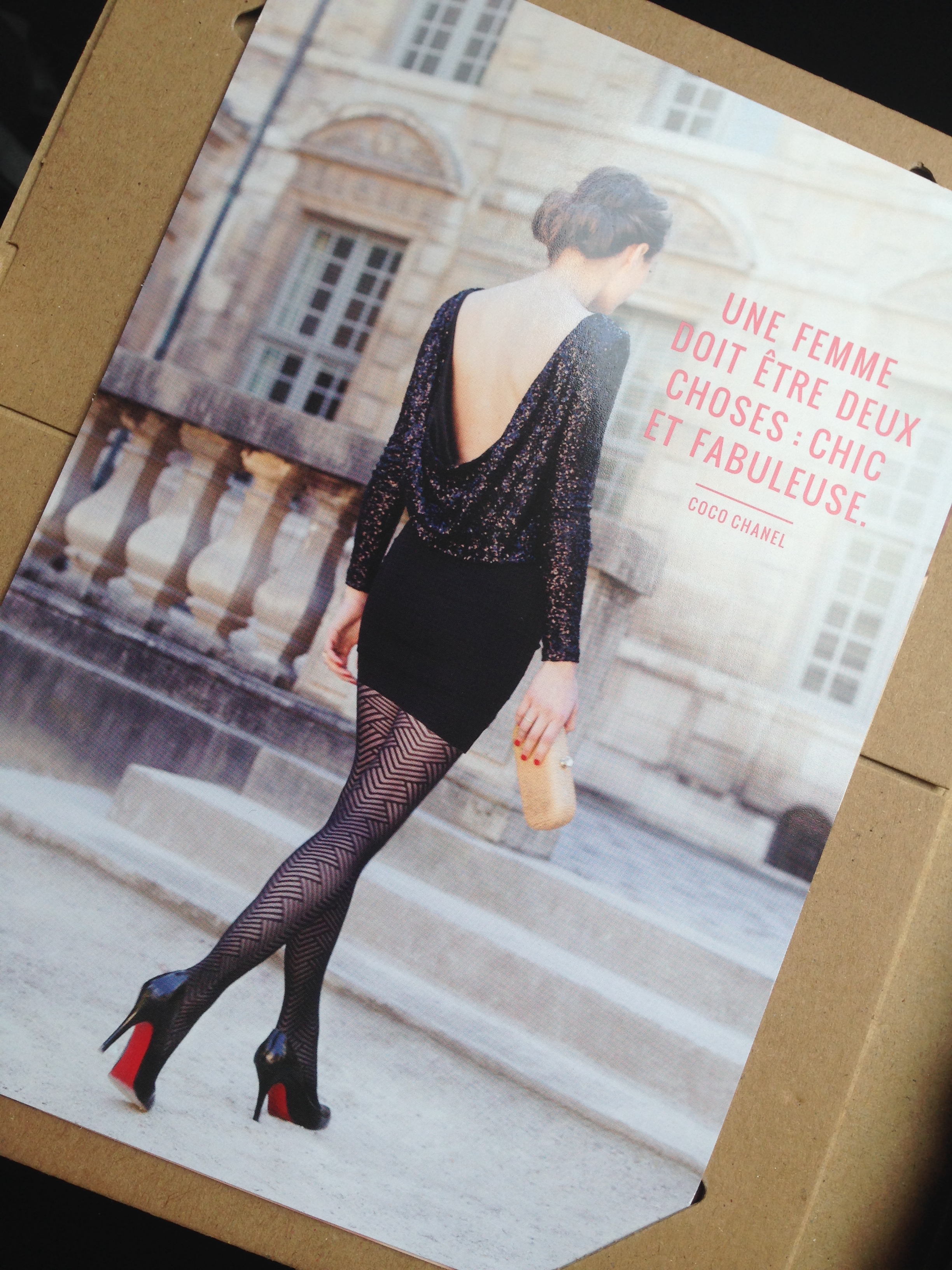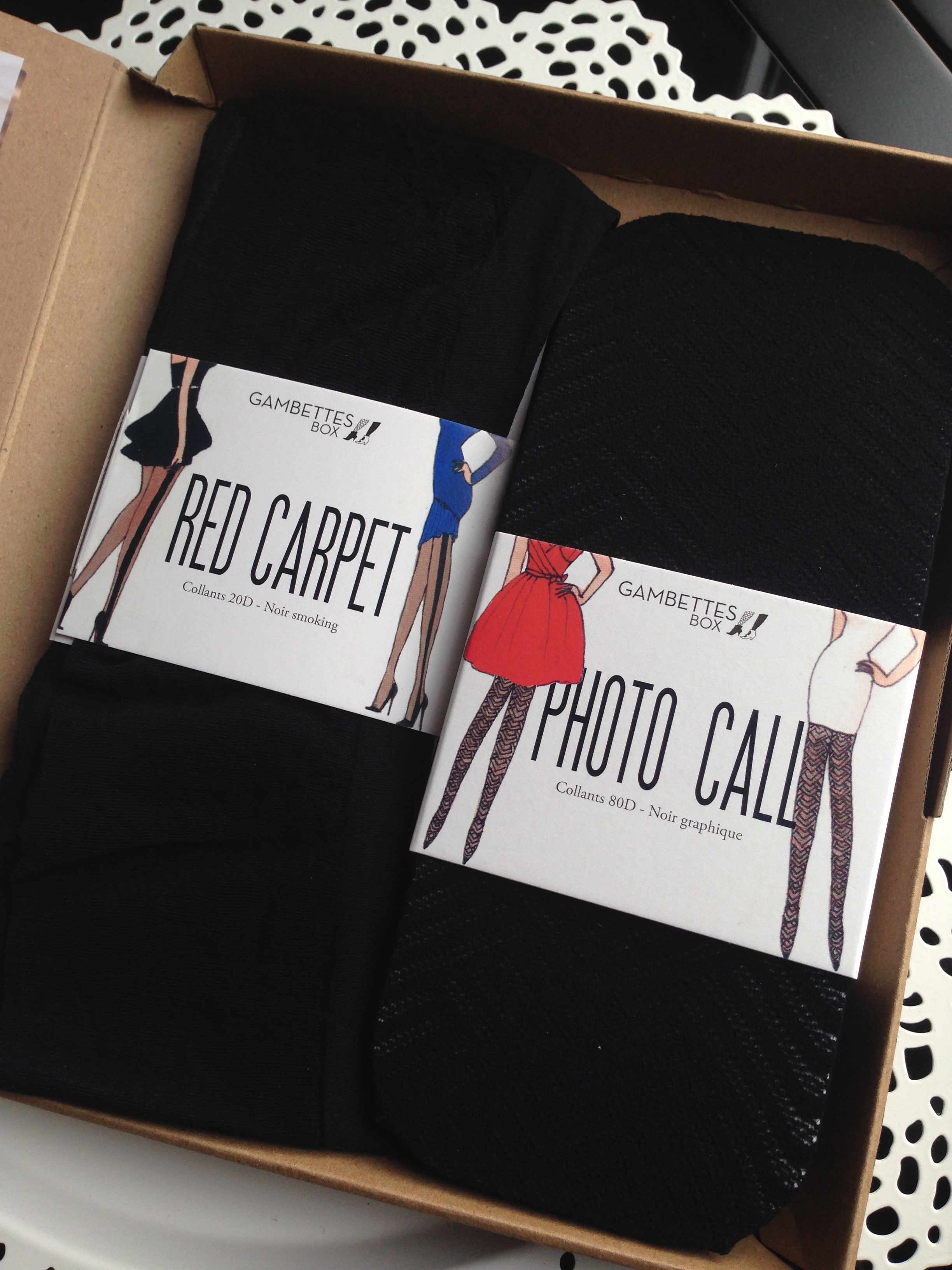 Passons maintenant à la seconde box: la Gambettes box. Toujours dans les premières, la box du mois de Mai était inspirée du Festival de Cannes et était canon ! Comme d’hab je ne prends pas de photo des collants portés car 1- j’aime pas trop mes jambons jambes et 2- le temps, le temps, je cours toujours après le temps.