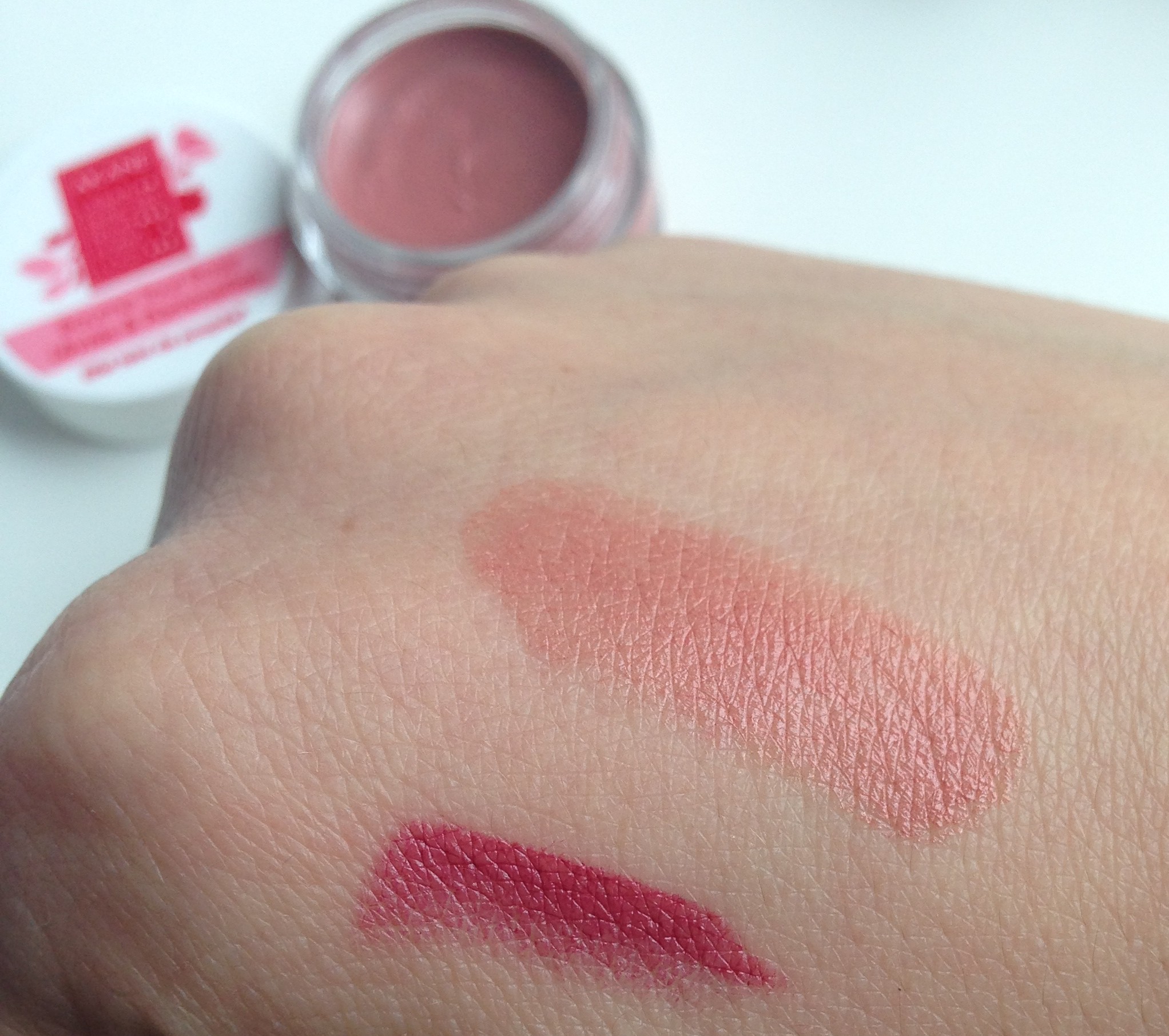 J’ai enfin décidé de swatcher le rouge à lèvres et sur la peau le rendu couleur n’est pas le même, la couleur est un peu plus vive, j’aime bien.