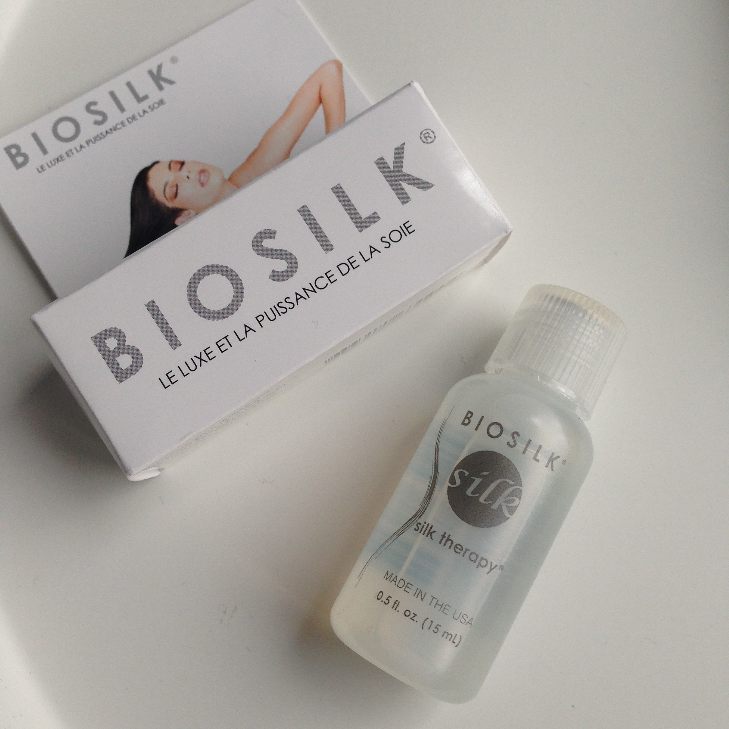 Le premier est un « soin » pour les cheveux Biosilk. Je ne vous dit pas la déception… Un produit bourré de silicones. Je fais de plus en plus attention à ce que je mets sur la tête et je crois que je n’utiliserai pas ce produits.