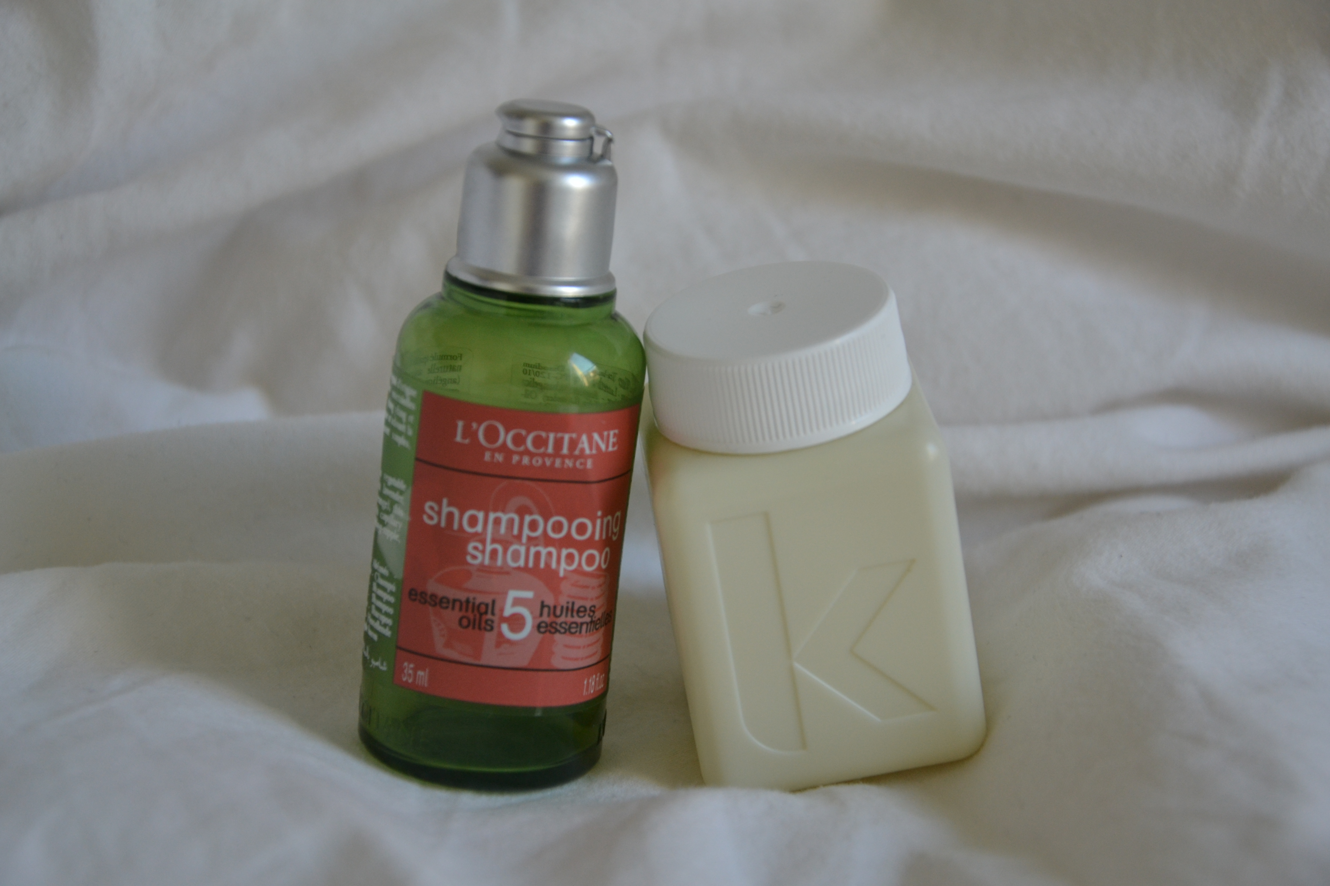 Ensuite on passe aux cheveux avec deux produits en format voyage mais en format suffisant pour se faire une idée.