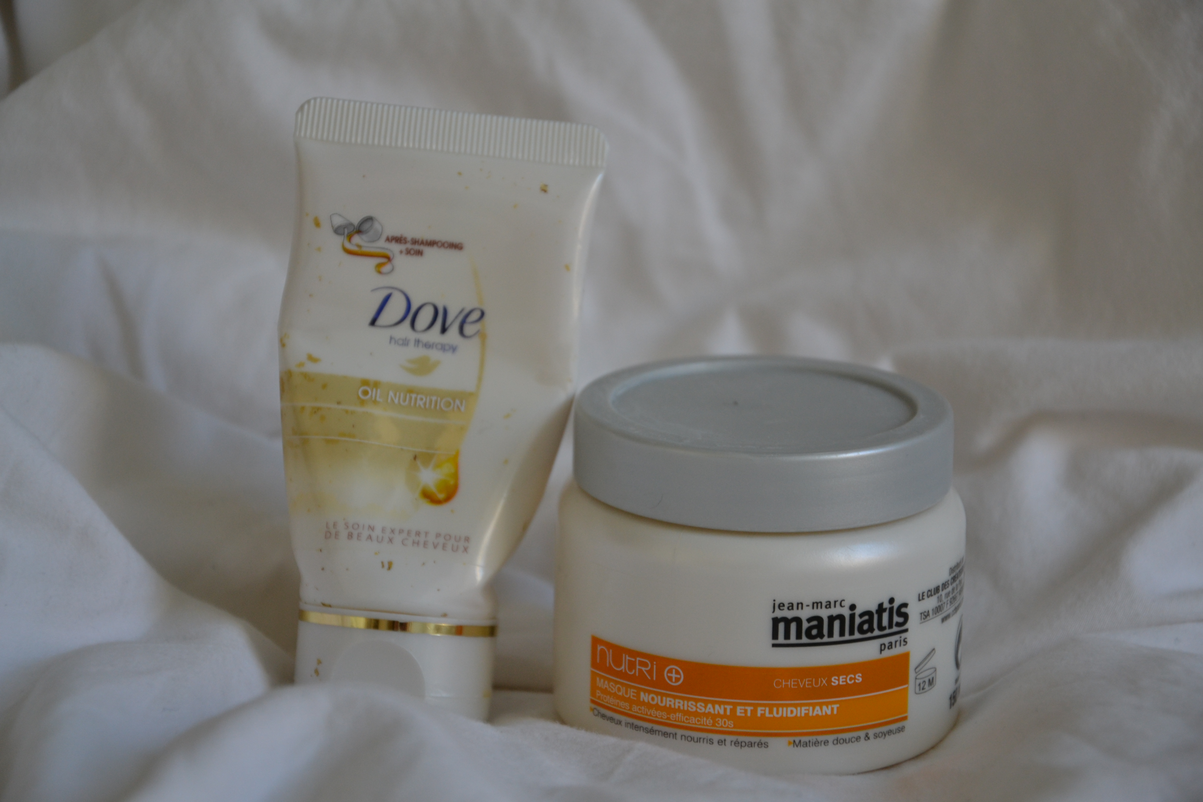 Le premier est l’après-shampoing Dove que j’avais reçu dans ma little box du mois de Mai. Ce soin bicolore un peu comme les malabars bi-goût est en fait un concentré de silicones. Je l’ai utilisé jusqu’au bout et je n’aime pas ce produit. Certes les cheveux se demelent facilement mais les silicones c’est pas mon dada. Je ne sais même pas pourquoi j’ai essayé ce produit justement. Certainement juste pour dire que je l’ai essayé et pour faire de la place. Oui, c’est bête.