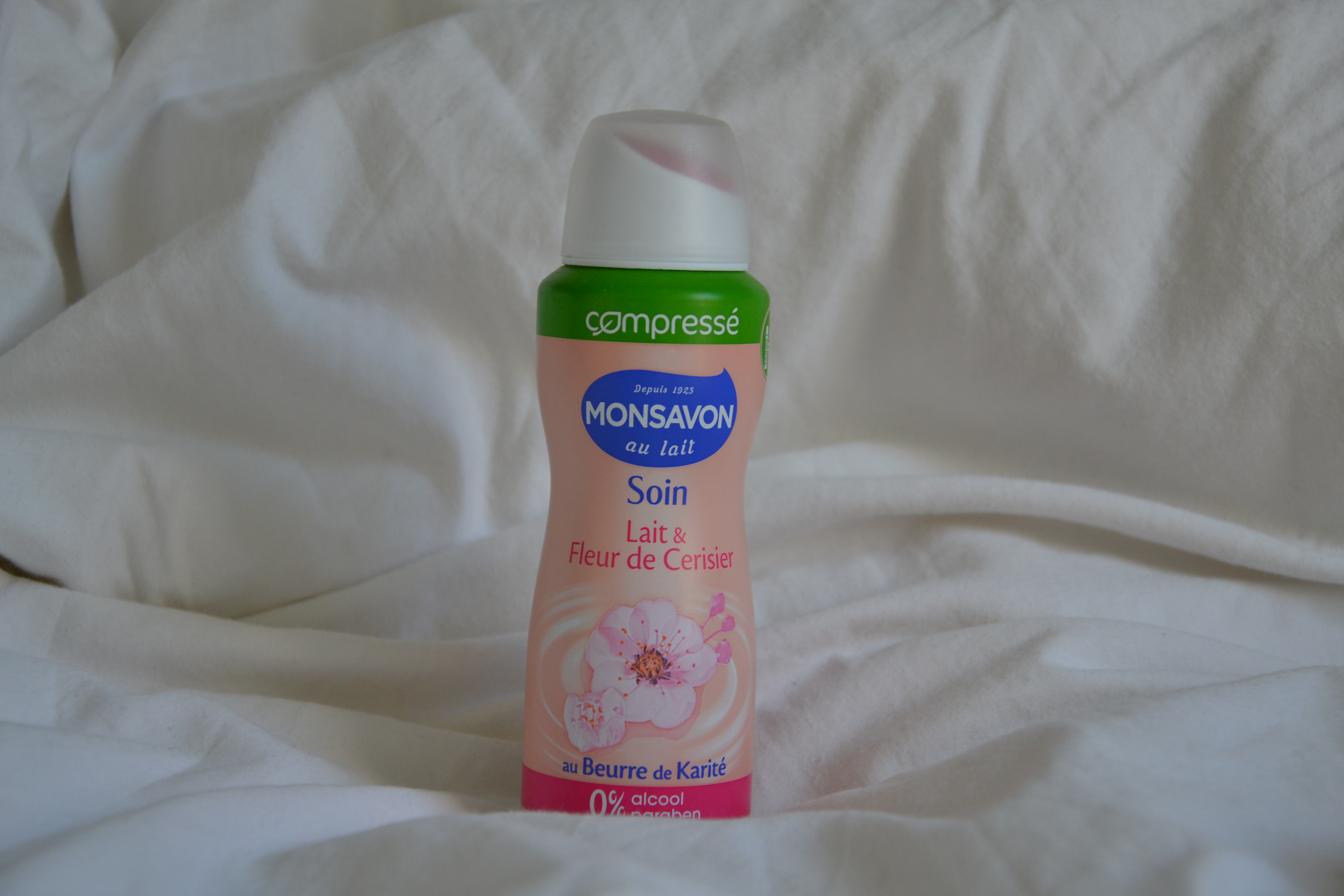 Comme il me fallait bien un petit remplaçant, j’ai profité des promos lors de la semaine de la beauté chez Carrefour pour essayer ce déodorant Monsavon au Lait et à la fleur de Cerisier et sans alcool. Moi qui n’étais pas adepte des déodorants spray, j’ai été super satisfaite de celui-ci. Il ne pique pas (j’ai la peau sensible), sent très bon (pas cette odeur que vous aimez au début et qui vous écoeurent tant elles sont fortes au bout de 3/4 jours) et surtout ne tâche pas mes vêtements. Son odeur discrète est vraiment très agréable parce que ce que je recherche dans un déodorant c’est une légère odeur et une bonne protection contre la transpiration mais pas un parfum qui se sent à 50 mètres !