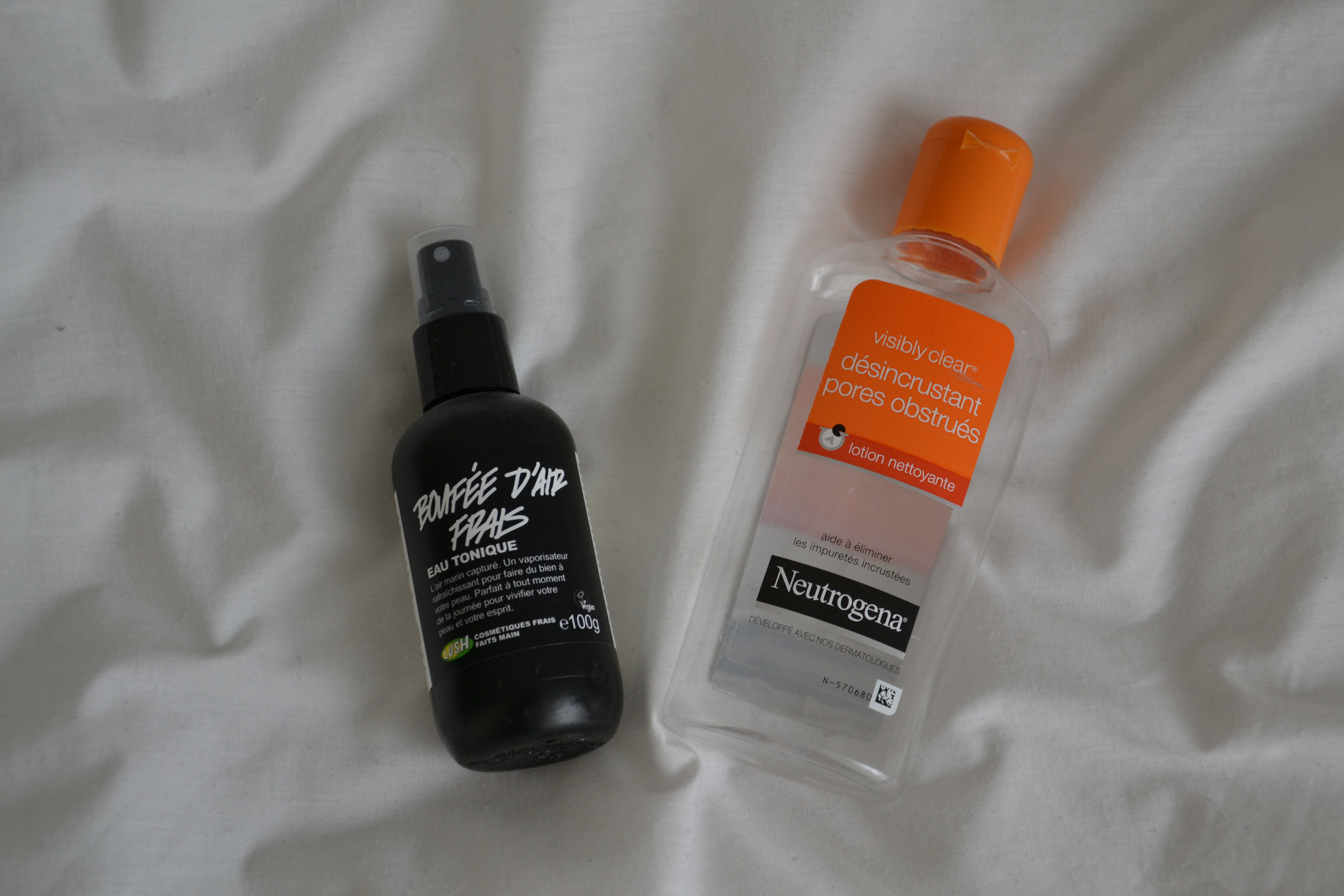 Après avoir bien démaquillé et nettoyé, j’ai fini deux lotions au mois de juin.