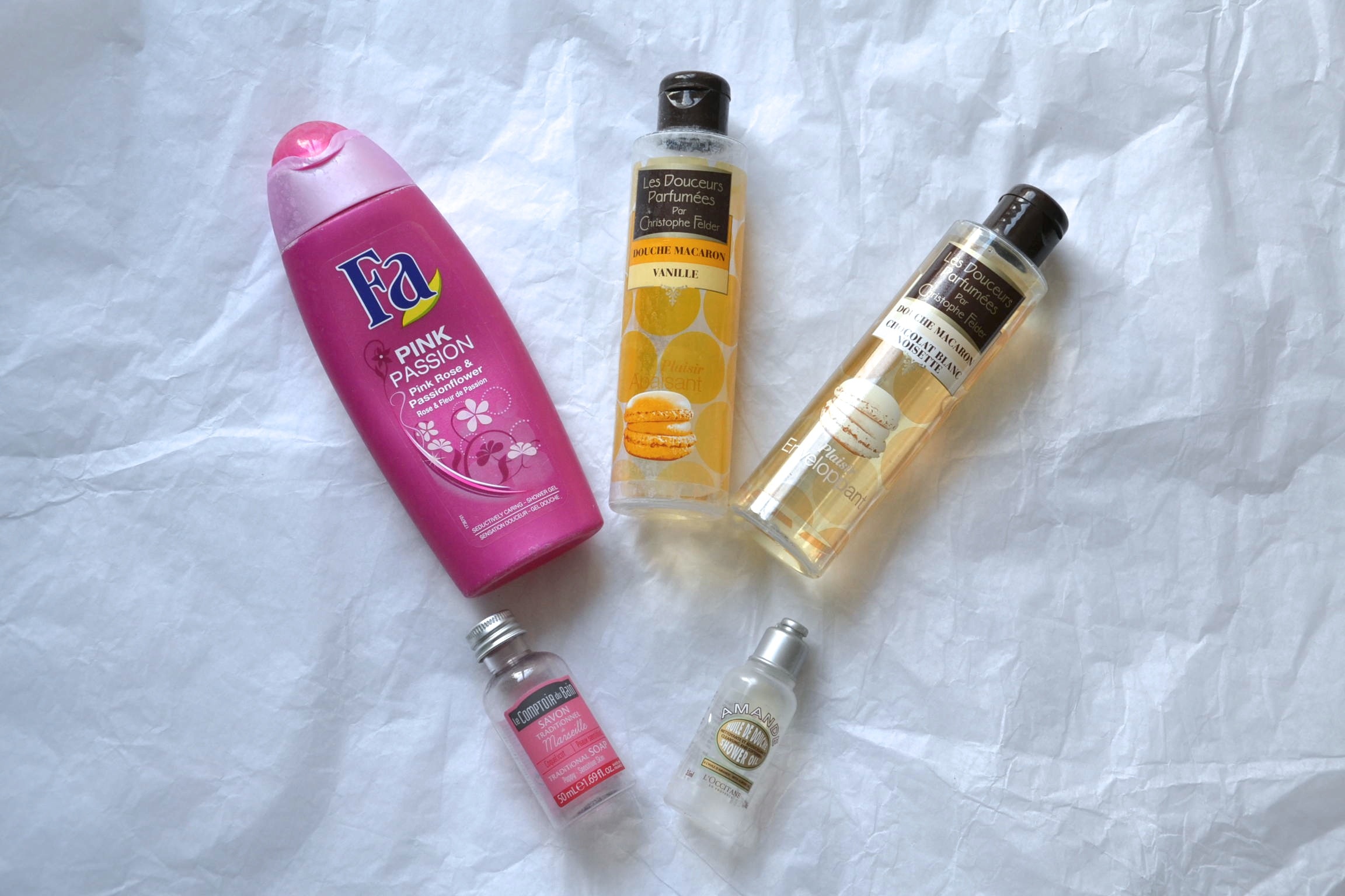 – Gel douche Fa, environ 3€ en grandes surfaces –