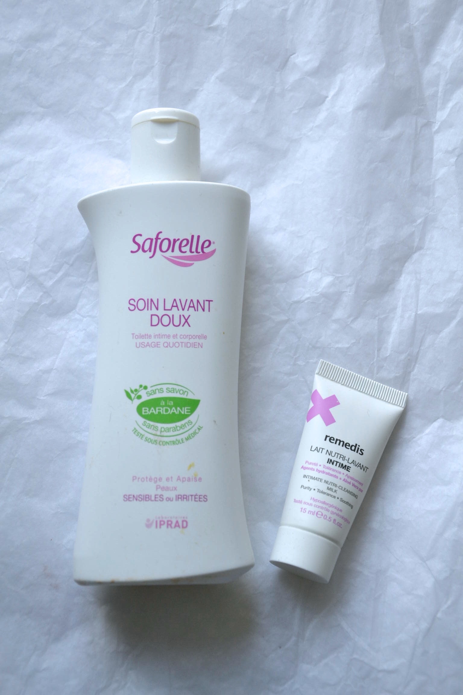 – Soin lavant doux Saforelle, environ 12€ en parapharmacie –