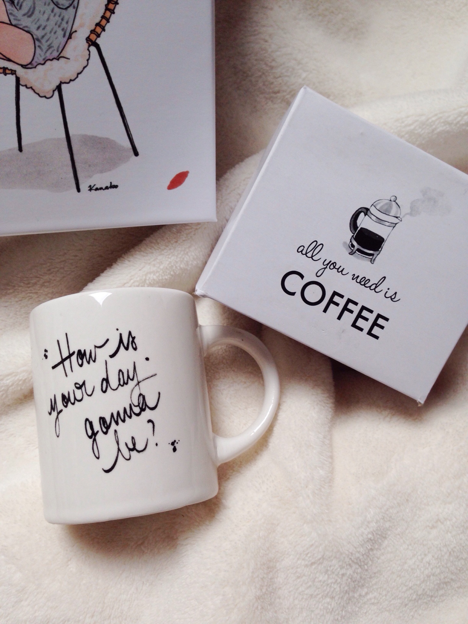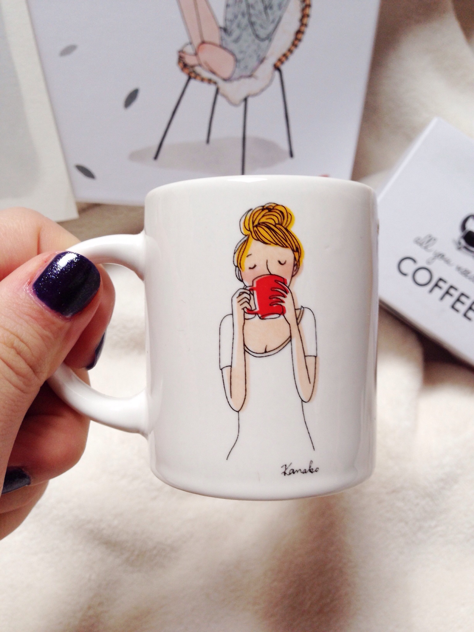 Ce mois ci le thème était Cosy et me faisait penser aux soirées à côté de la cheminée ou sous un plaid avec un bon thé chaud. On commence par les goodies et le premier est un mug avec une illustration de Kanako. Le mug est vraiment trop mignon surtout qu’il est petit ! Je pense que ça sera mon mug préféré que j’amènerai au boulot 🙂