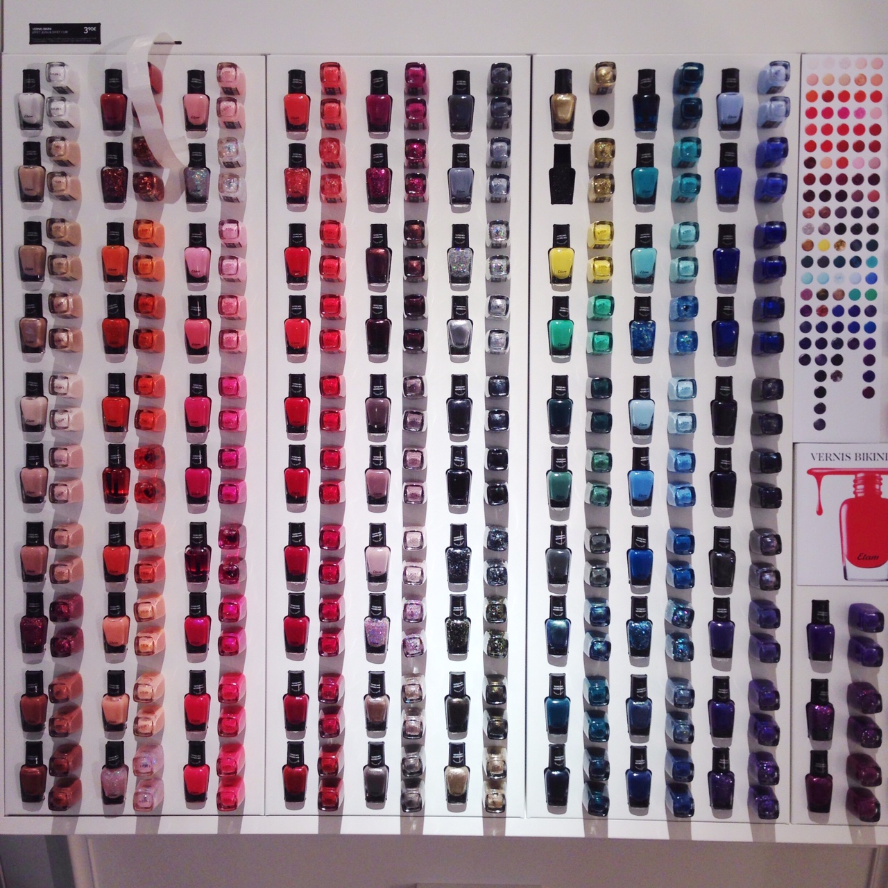 Voir toutes ces couleurs et tous ces produits bien alignés ça me donne envie de tout essayer sur mes petites mains. La collection est vraiment très complète, on retrouve un peu moins de 100 vernis différents, 80 fards à paupières, plusieurs mascaras, des laits pour le corps, des crayons pour les yeux, des rouges à lèvres. Bref, vous l’aurez compris, Etam a vu les choses en grand.