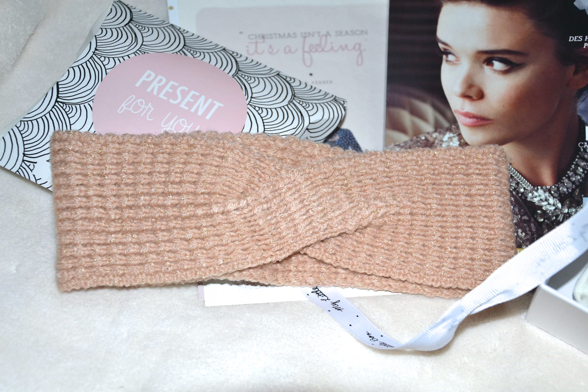 Ensuite on a en premier goodie un headband tricoté et pailleté. Le mien est rose mais j’ai vu des versions en gris et d’autres en noir. J’aurai préféré avoir le gris mais le rose me convient quand même.