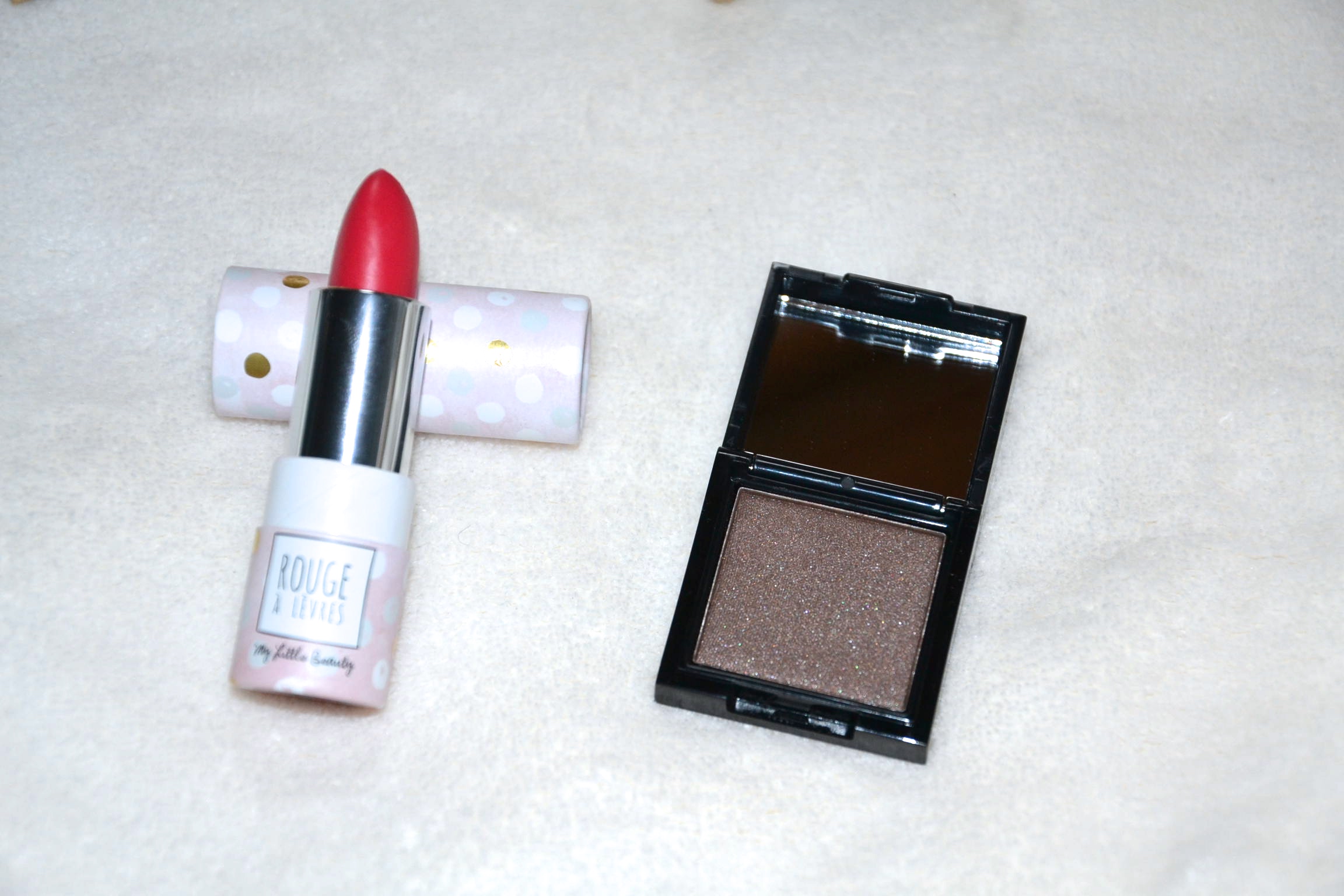 Au niveau produits on a deux produits de maquillage que je vous ai swatché. Un rouge à lèvres de la gamme My little beauty. Un rouge légèrement framboise et au fini assez transparent. Je suis un peu déçue, on avait déjà eu un rouge à lèvres de cette couleur à l’automne 2013. Bon, le fini n’est pas tout à fait le même puisque celui ci est transparent et que le précédent était plutôt mate mais bon. Je ne suis pas super emballée…