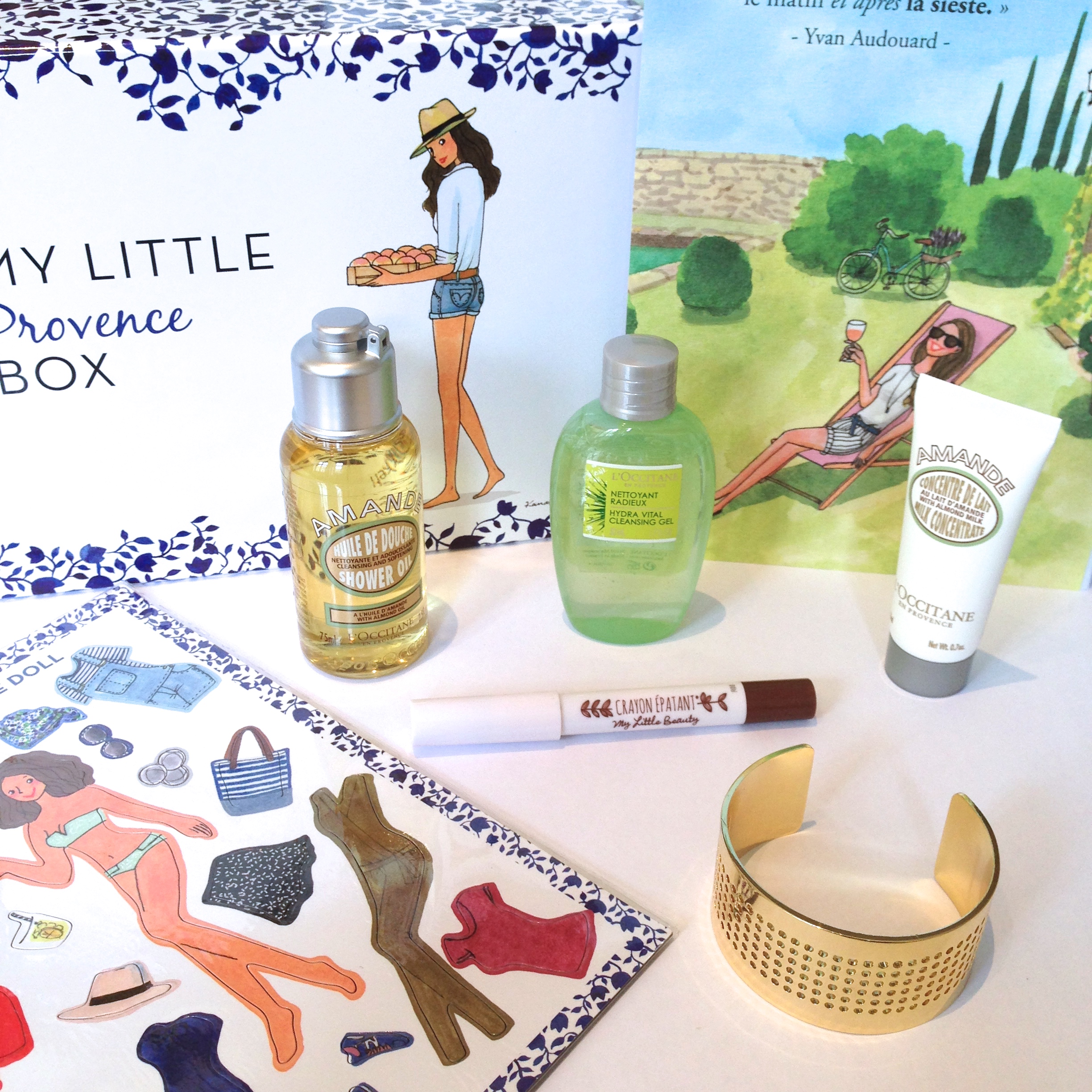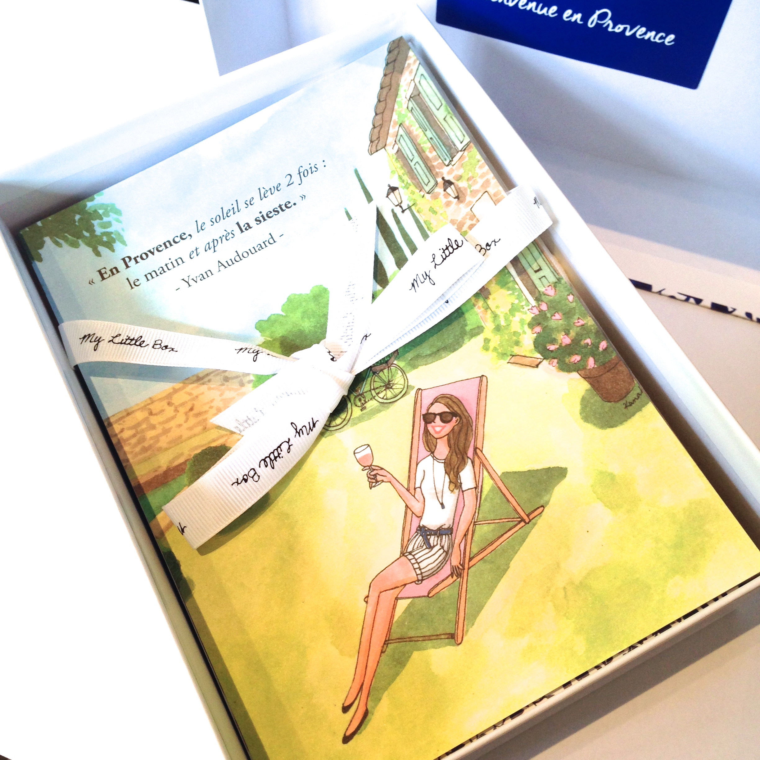 Parlons bien et parlons boxs maintenant, on va commencer par celle que j’attendais le plus: My little box, qui ce mois-ci a revêtu un bel habit bleu et blanc et se fait nommer My little Provence box.
