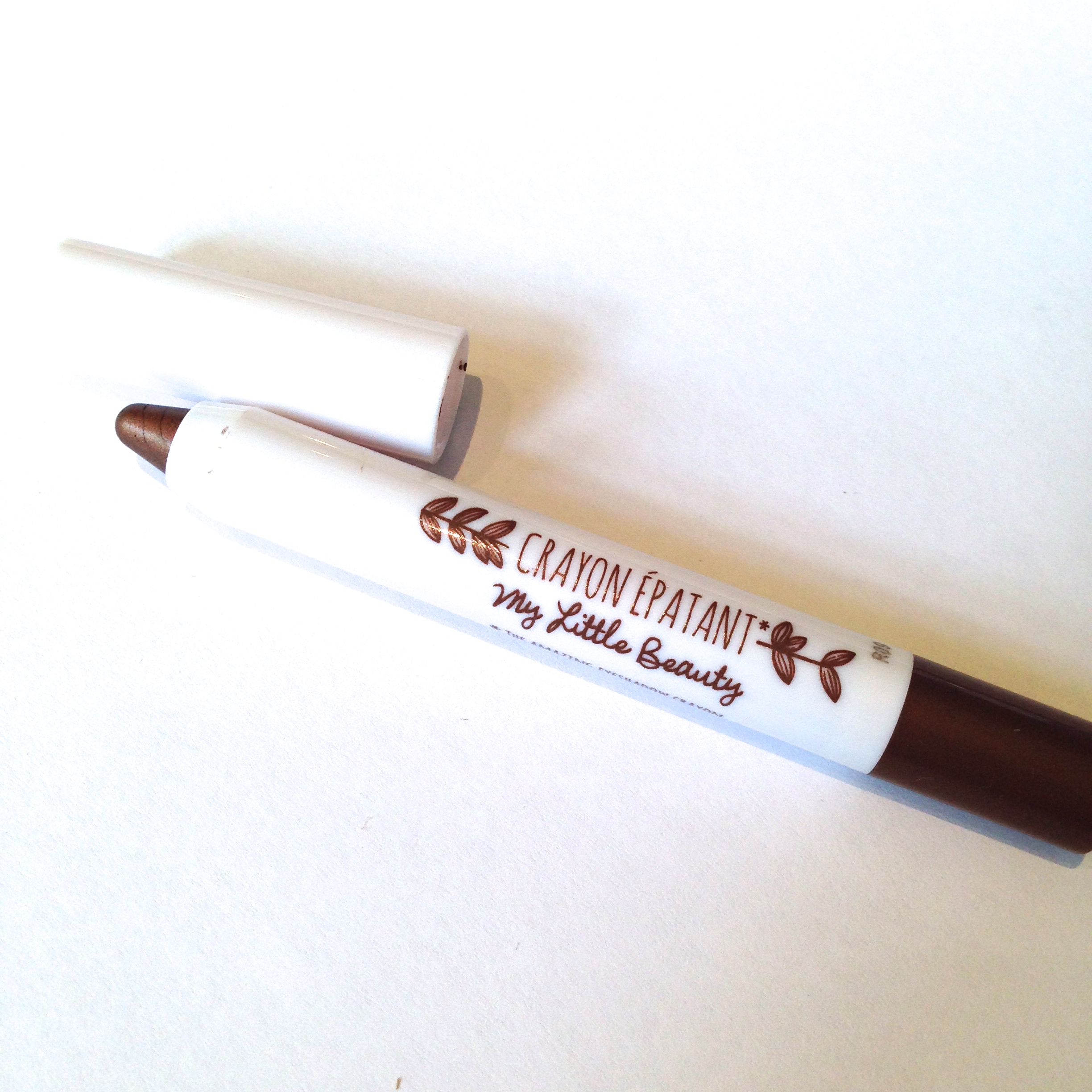 Enfin le produit My little beauty: un crayon fard à paupière marron… Comment vous dire que l’on a déjà eu un produit quasiment identique il y a tout juste 2 ans et que je ne m’en servais pas… Par ailleurs nous avions aussi déjà eu un fard à paupière marron dans la box du mois de décembre. C’est dommage de recevoir le même type de produit, dans la même couleur en très peu de temps, il aurait peut être été préférable de recevoir une couleur un peu plus claire…