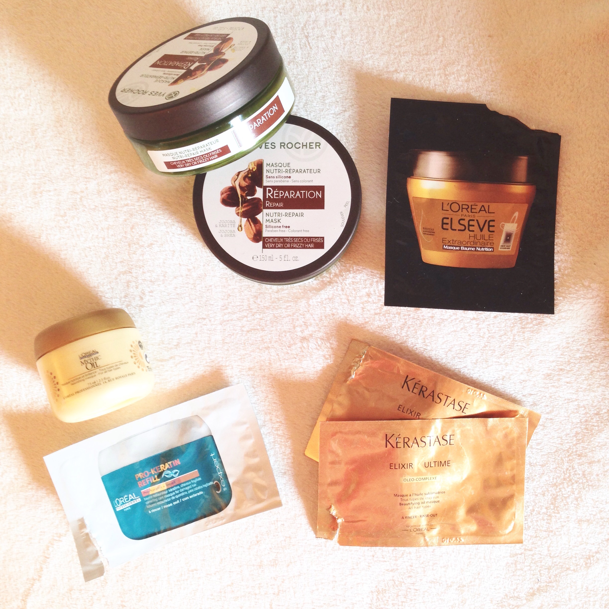 Autres échantillons utilisés: deux masques de la gamme Élixir ultime de chez Kérastase, sans silicones svp. Produit assez nourrissant mais je ne le rachèterai pas car un peu cher vu ma consommation.