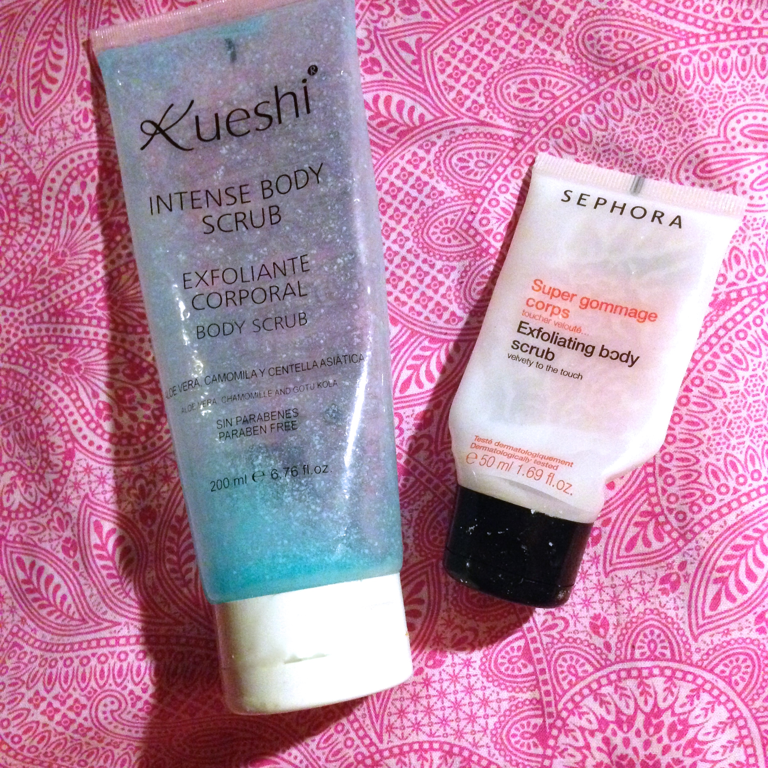 Passons maintenant aux gommages avec deux produits que je vous ai déjà présentés. Le Kueshi dont je vous ai parlé ici, je vous disais que je l’avais déjà racheté en vente privée et voici le flacon que j’ai terminé. Je ne ne le rachète pas pour le moment mais je l’aime beaucoup.
