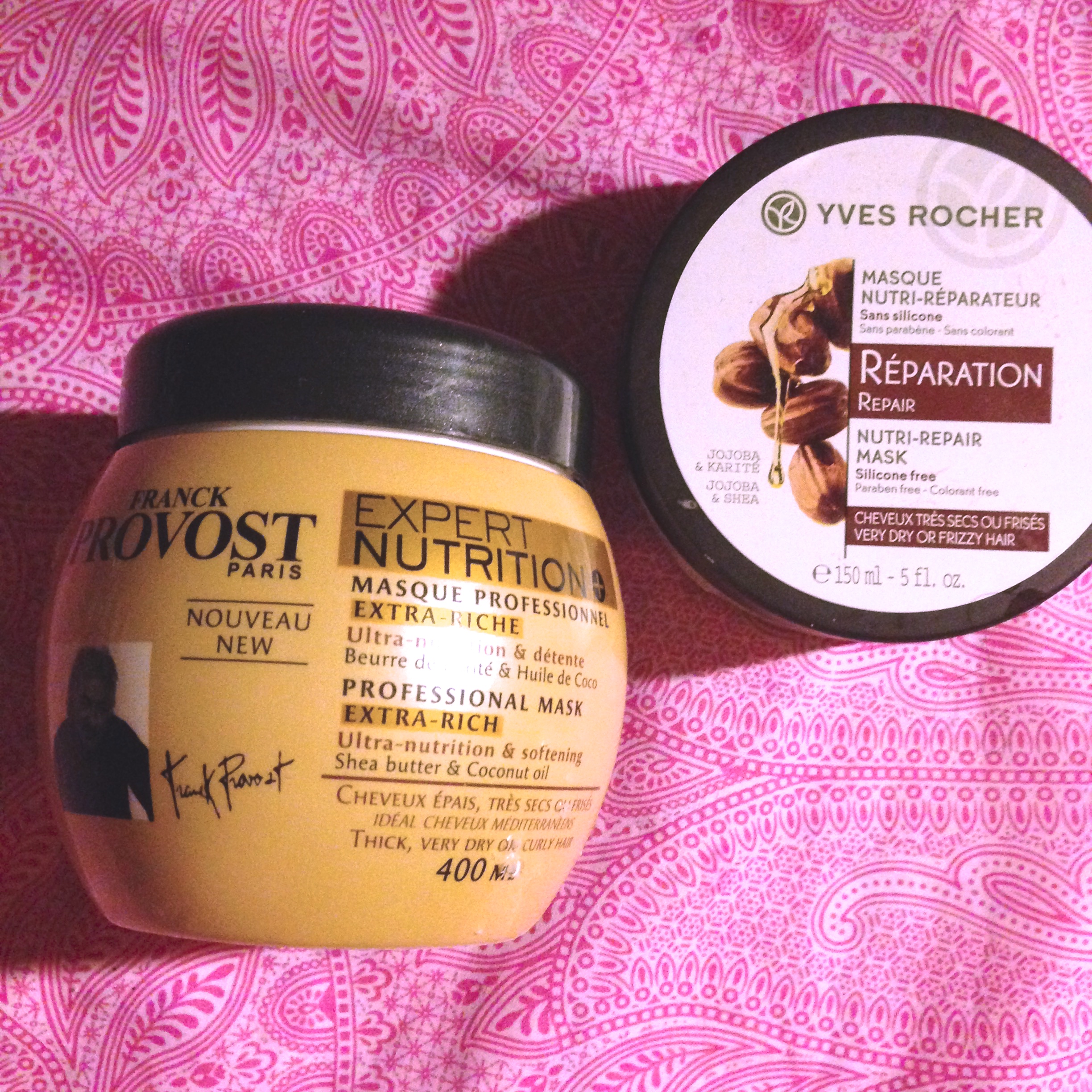 Ensuite deux masques pour les cheveux que je vous ai déjà présentés plusieurs fois, vous pouvez lire mon avis ici et là. Comme je vous disais la dernière fois, je mélange mon masque Yves Rocher avec un peu d’huile de karité et franchement j’aime bien la combinaison des deux.
