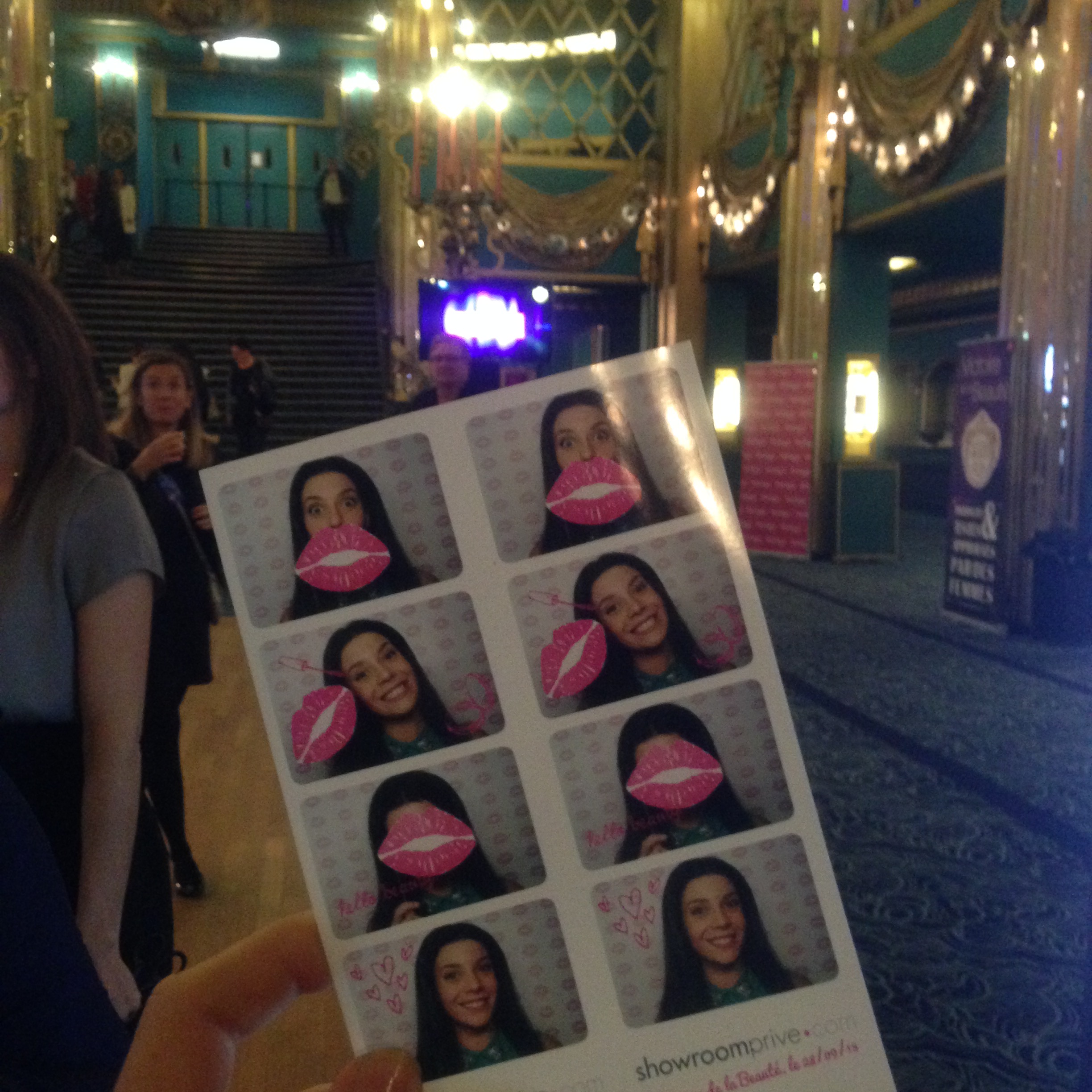 Dans le hall d’entrée du théâtre nous retrouvons un coin Showroomprivé, partenaire des Victoires avec un bar à jus de fruits frais, un coin coiffure mais aussi un photomaton fun que nous avons toutes un peu monopolisé (oui oui, je confesse).